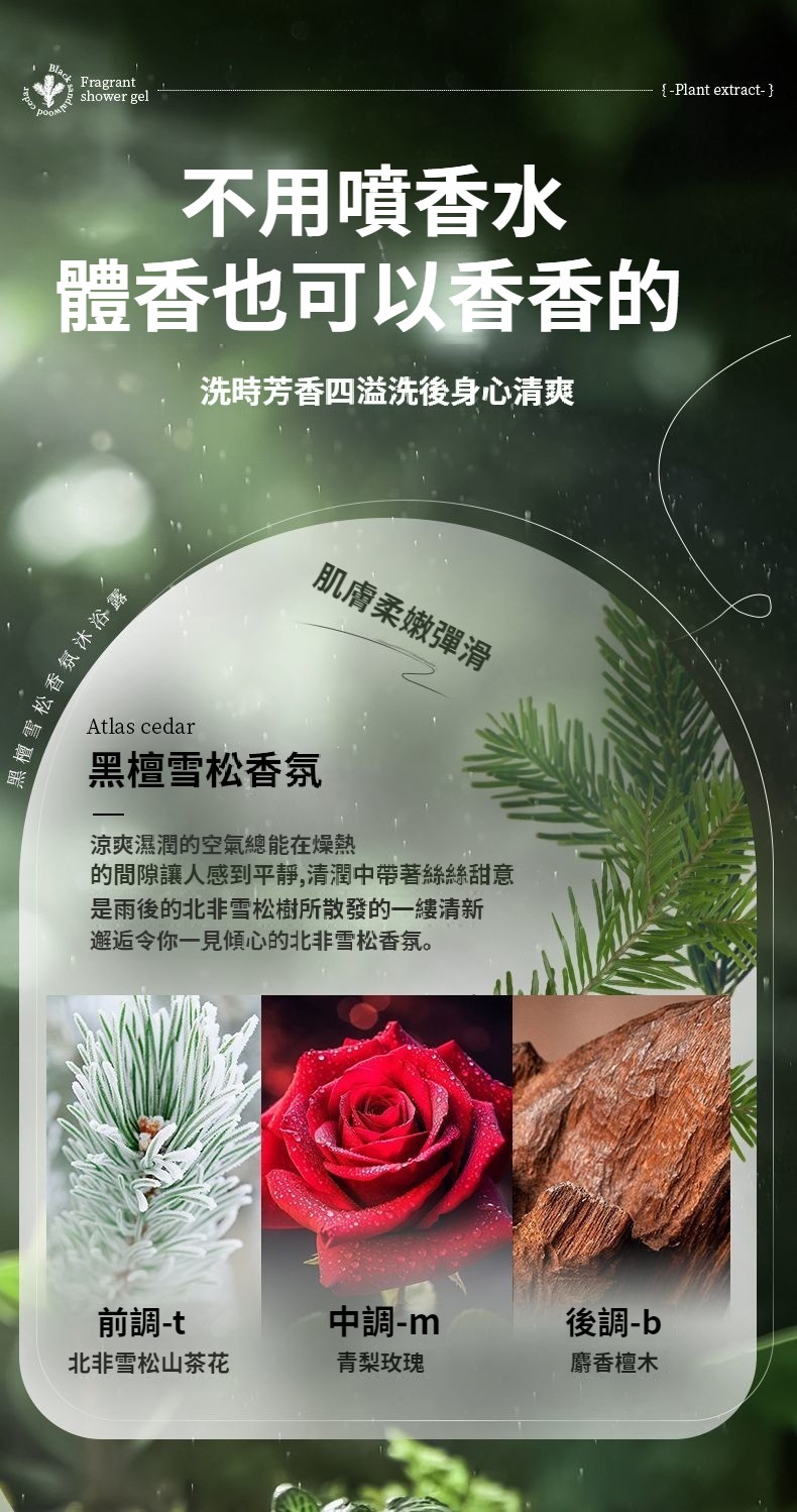 居家裝黑檀雪松香氛沐浴露香味留香超香深層清潔控油保濕大瓶裝