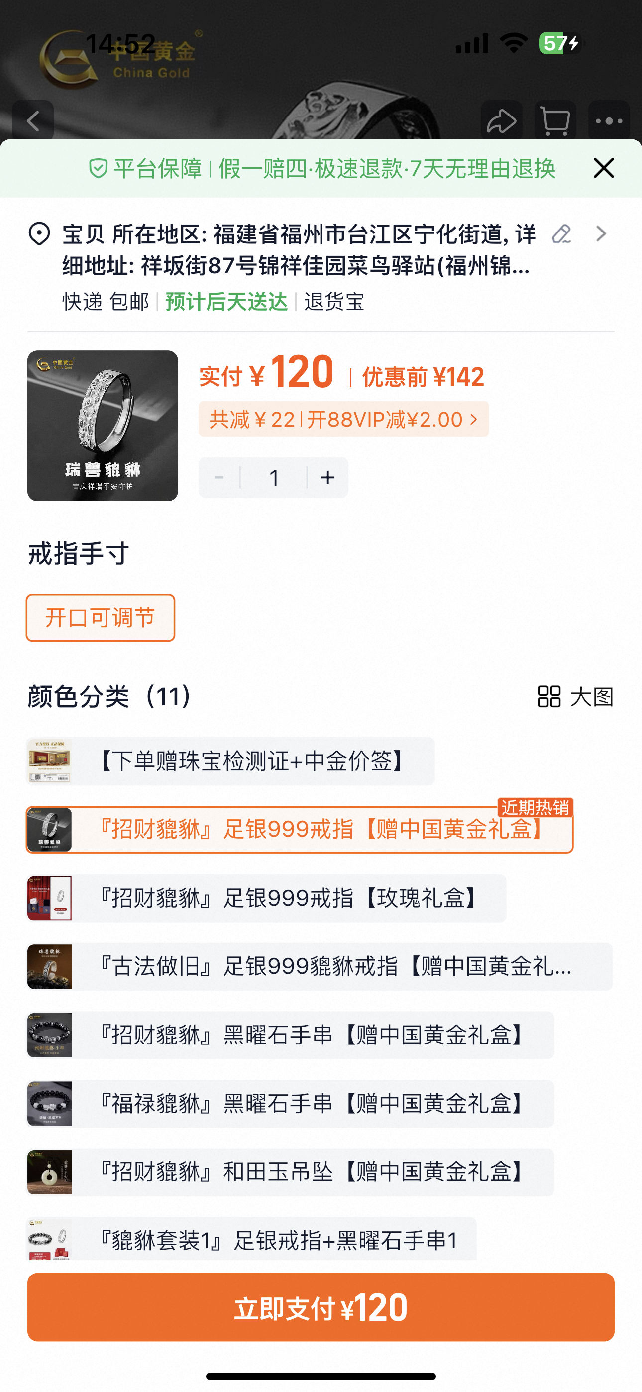 足銀招財貔貅戒指1個