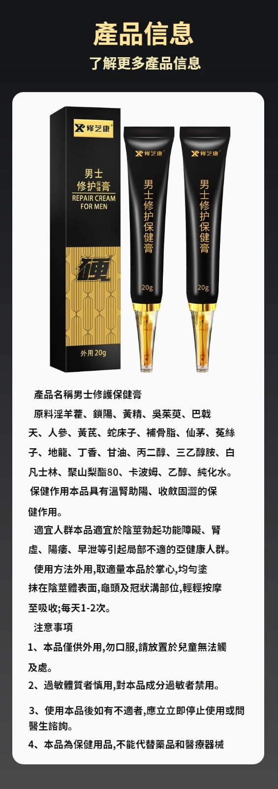 男士膏助男用勃膏硬軟膏護理溫腎按摩膏貼牌草本外用養護膏 NT$ 1099