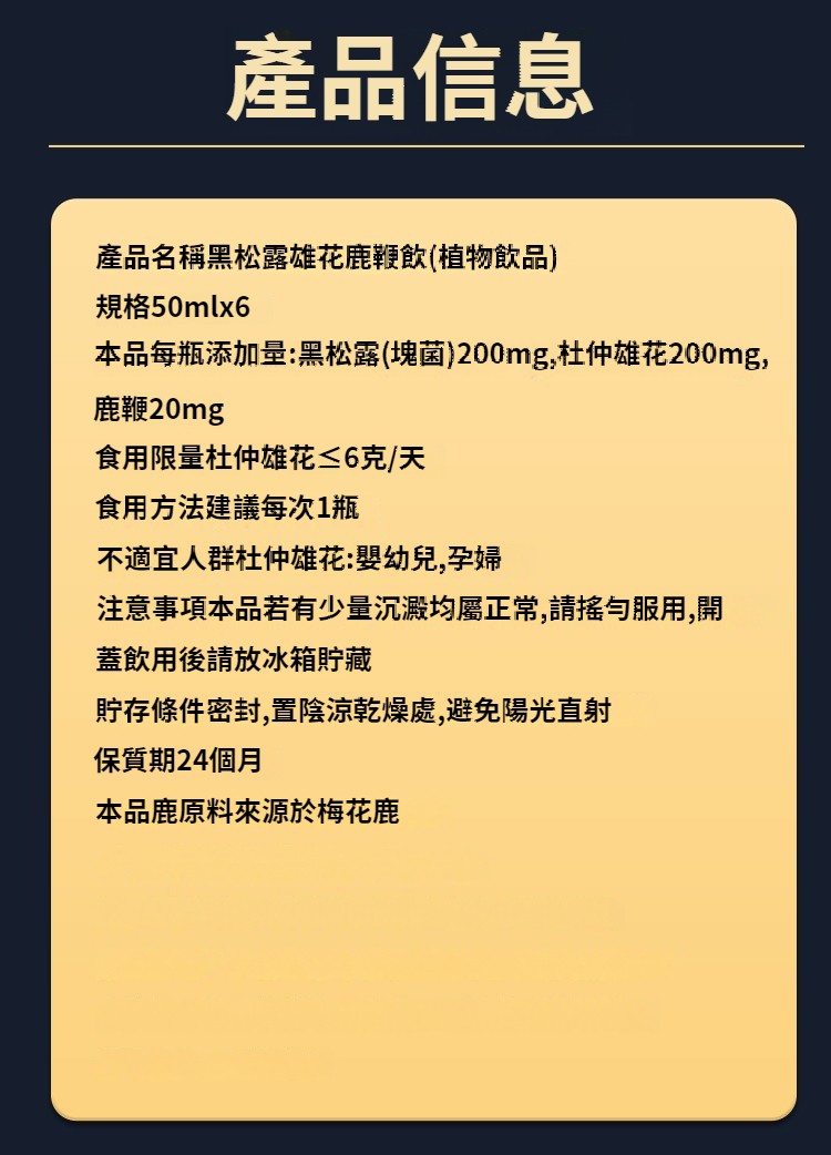 黑松露雄花鹿鞭飲 海參牡蠣肽黃精三鞭男士口服液