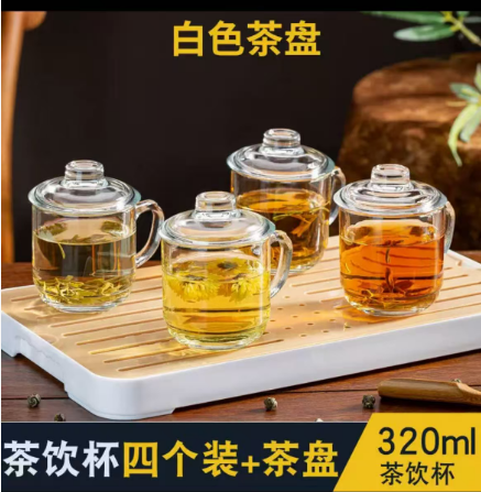①【茶饮杯320毫升四只+白茶盘 】拍1份+【茶饮杯320毫升两只】拍1份(加起来一共6只透明杯+1个茶盘)