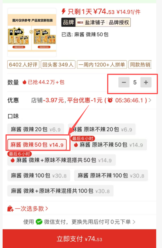 ②盐津铺子 麻酱毛肚 微辣 250包(50包拍5次)