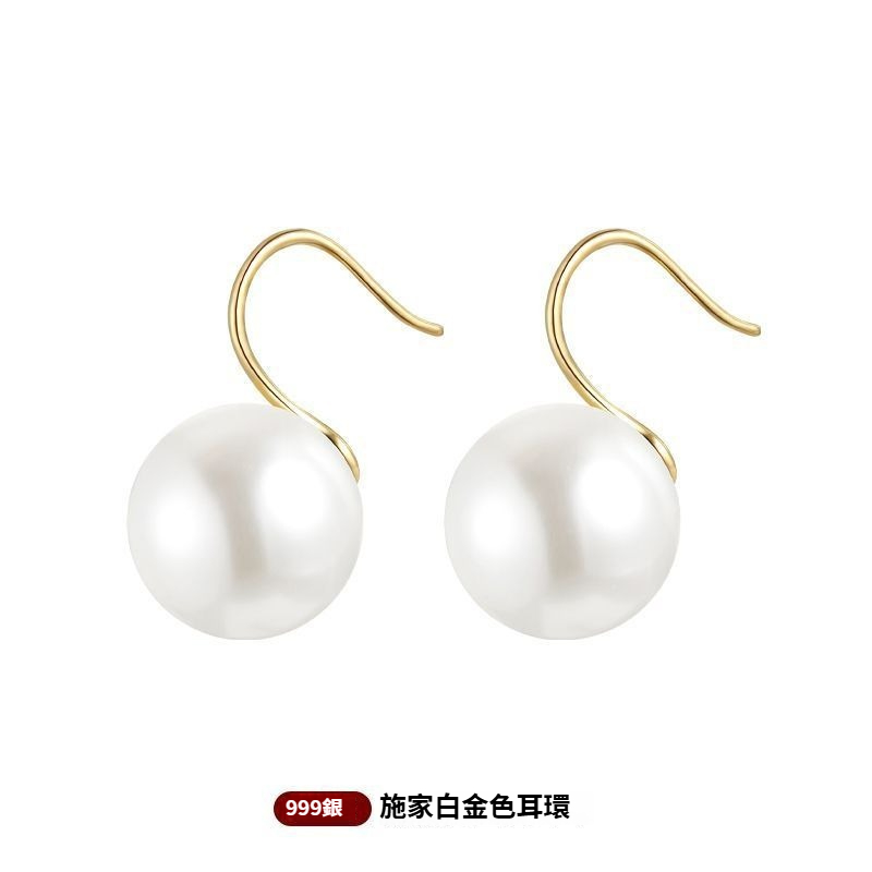 【施家白1.2cm】999銀金色耳鉤+禮盒