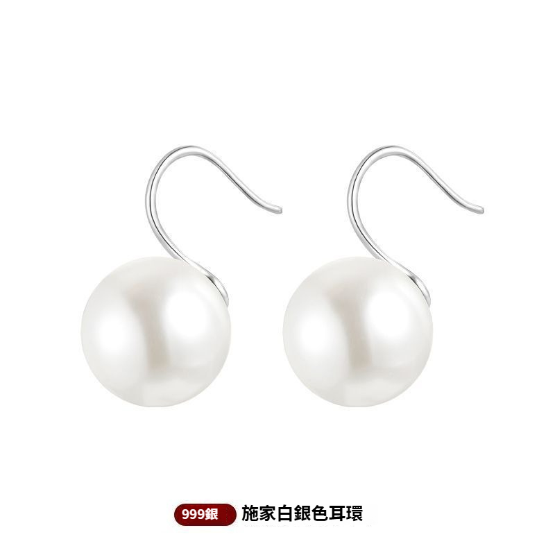 【施家白1cm】999銀銀色耳鉤+禮盒