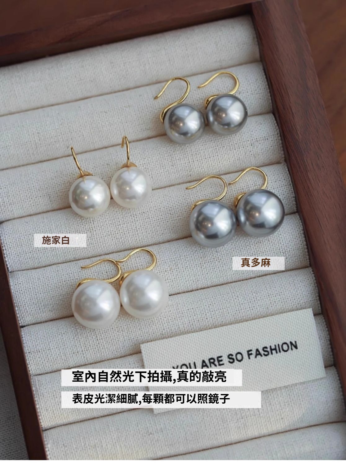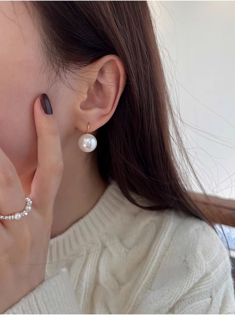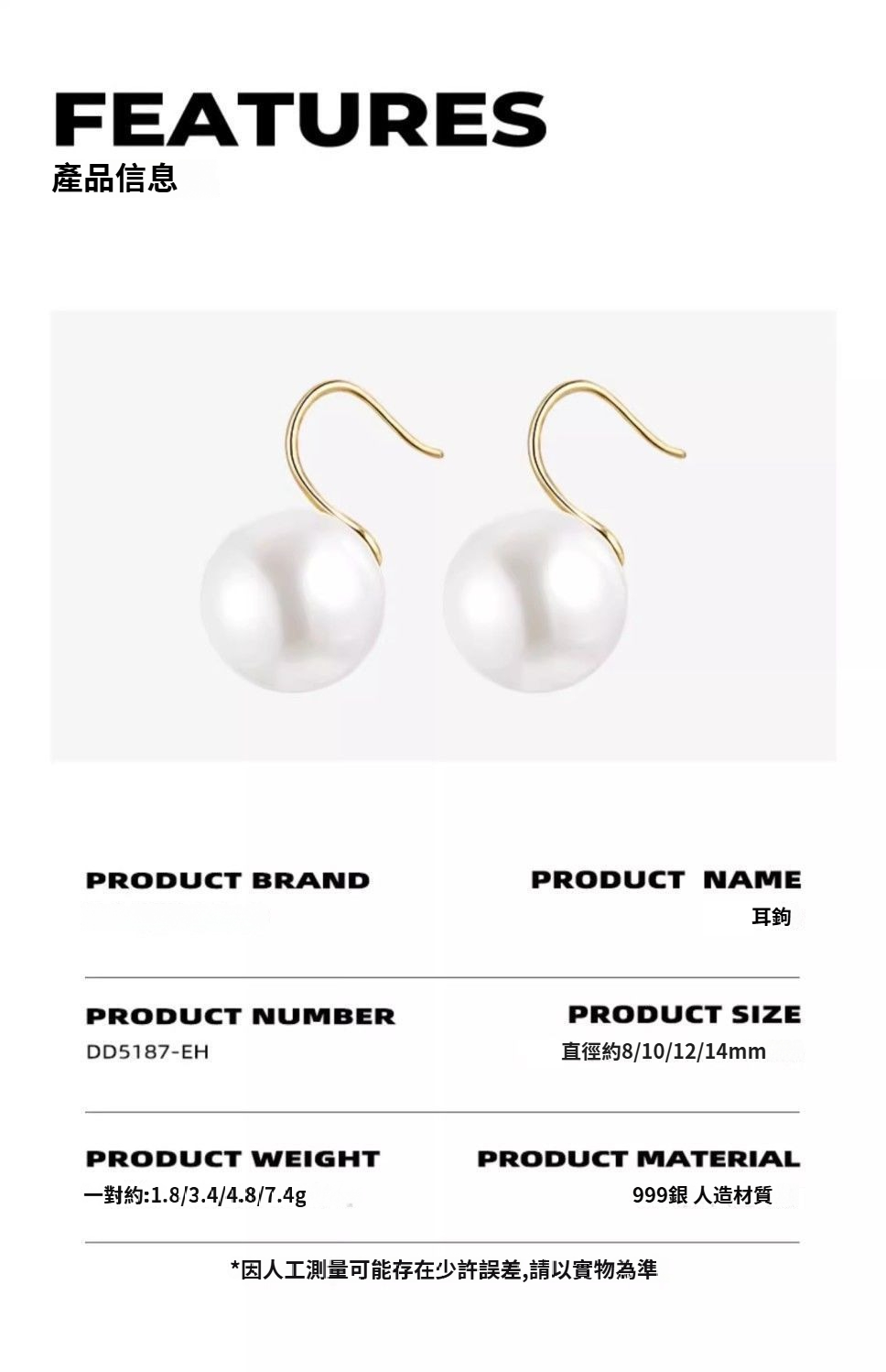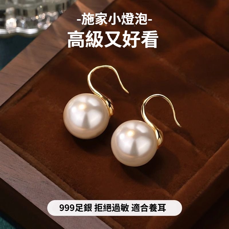 第 1 件 : S999純銀圓珠耳飾耳環高級感耳鉤耳墜珠珠耳環送禮盒