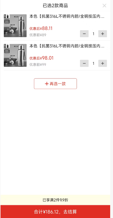 ③德國全鋼保溫杯2個(鋼本色1000ml+鋼本色1500ml)186元