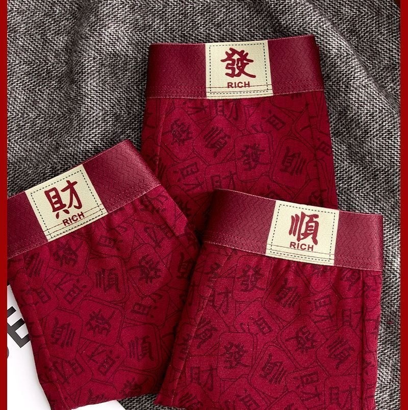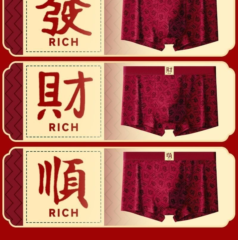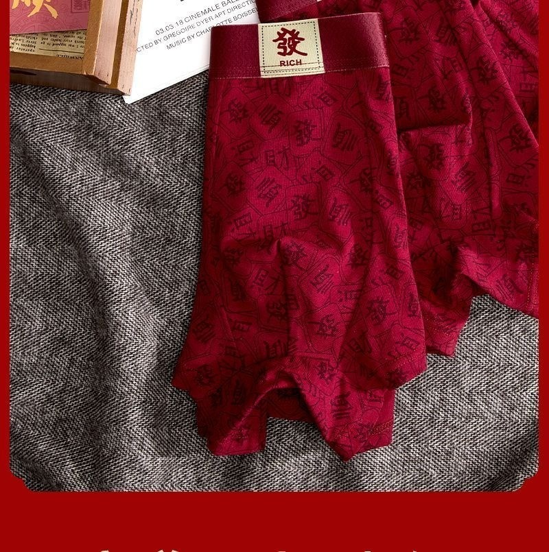 第 3 件 : 正品純棉大紅本命年男士內褲男款2026馬年喜慶平角四角短褲