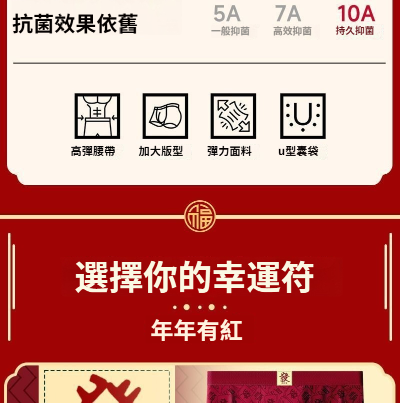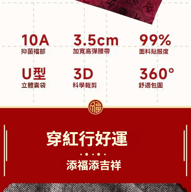 第 1 件 : 正品純棉大紅本命年男士內褲男款2026馬年喜慶平角四角短褲