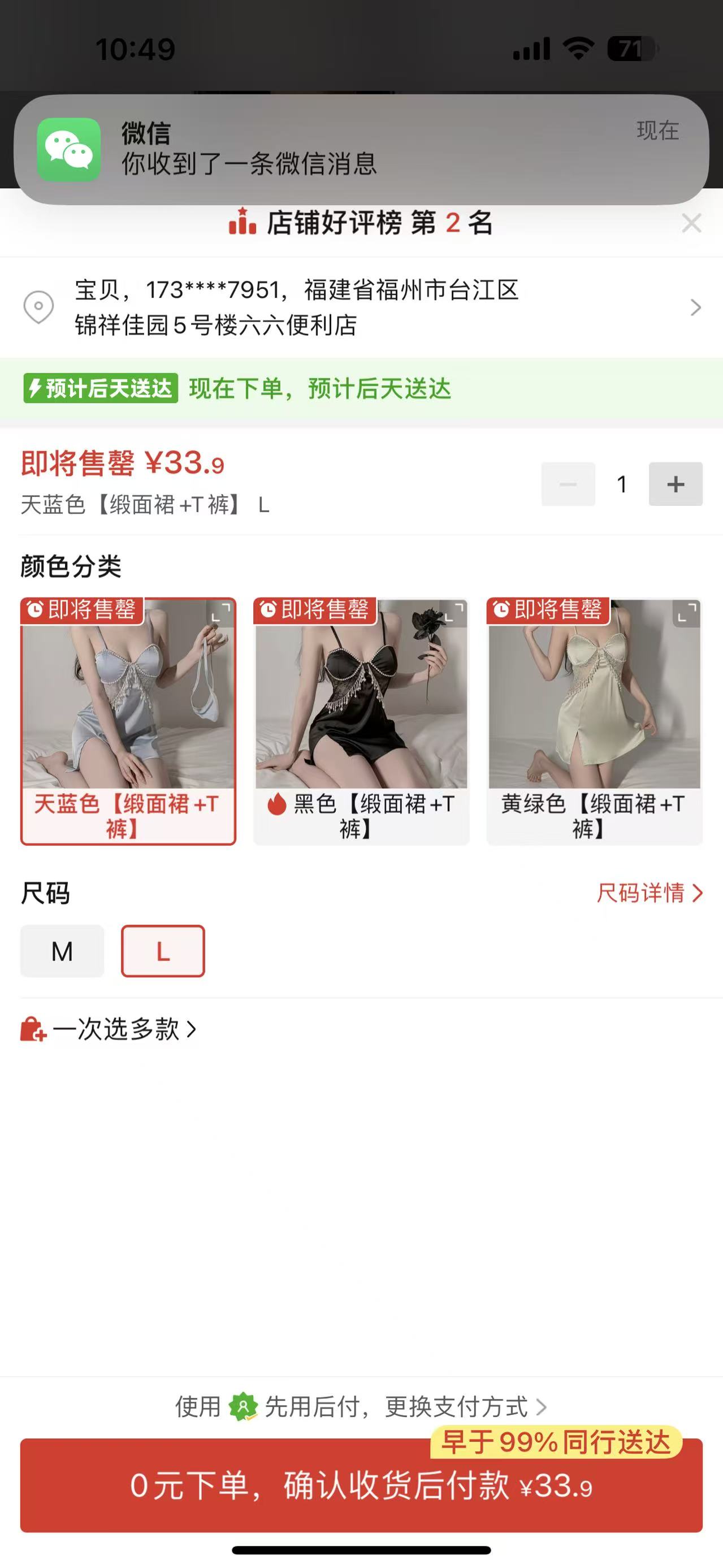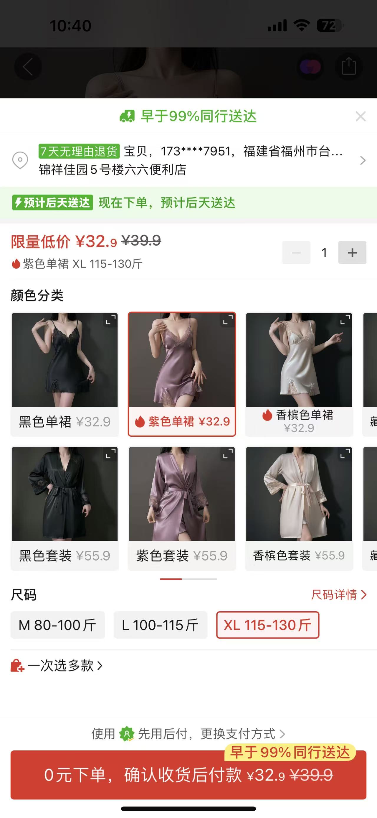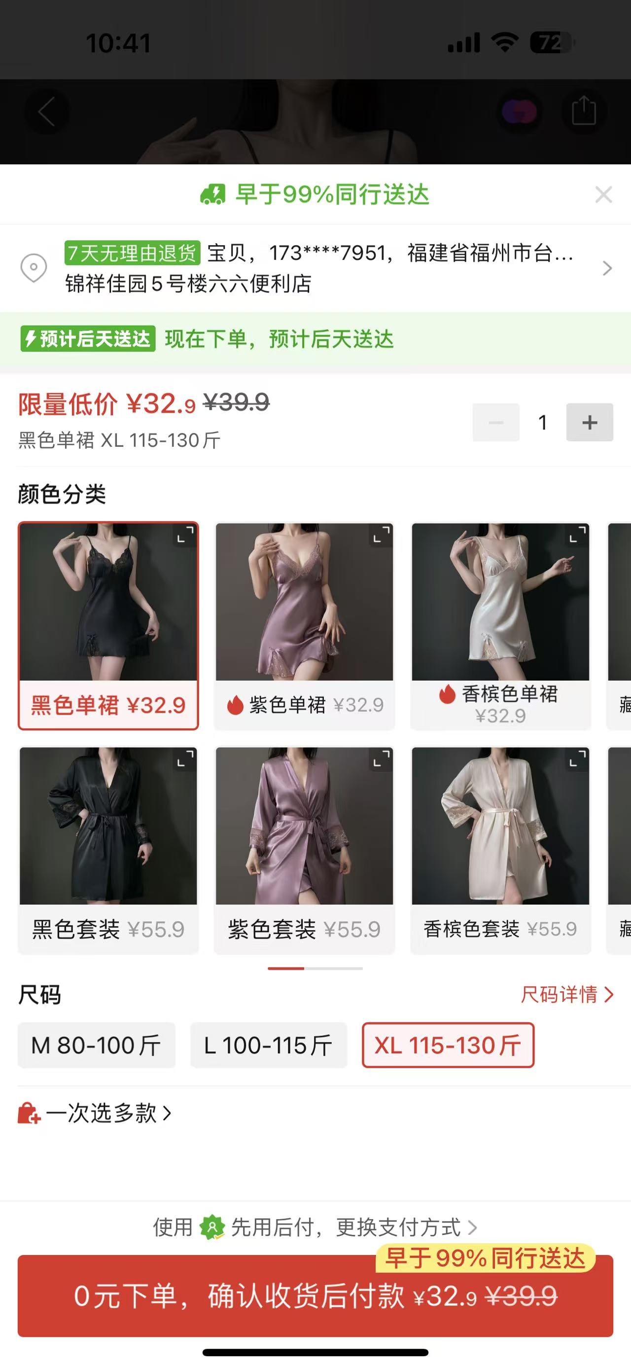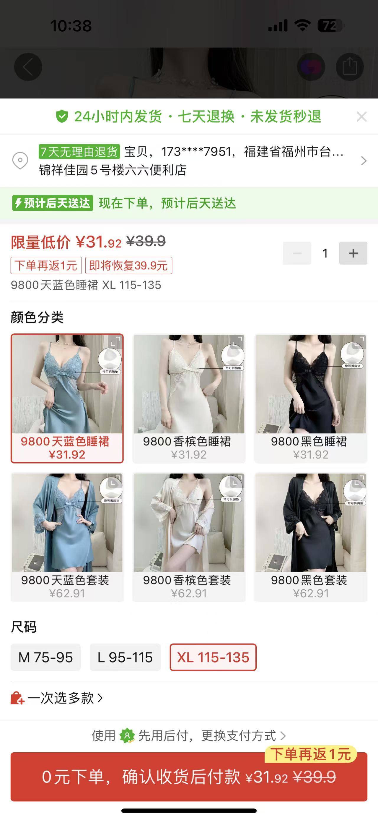 ①藍色吊帶睡裙1件XL尺碼+②藍色珍珠吊帶睡裙1件L尺碼+③紫色吊帶睡裙1件XL尺碼+④黑色吊帶睡裙1件XL尺碼(131.62元)