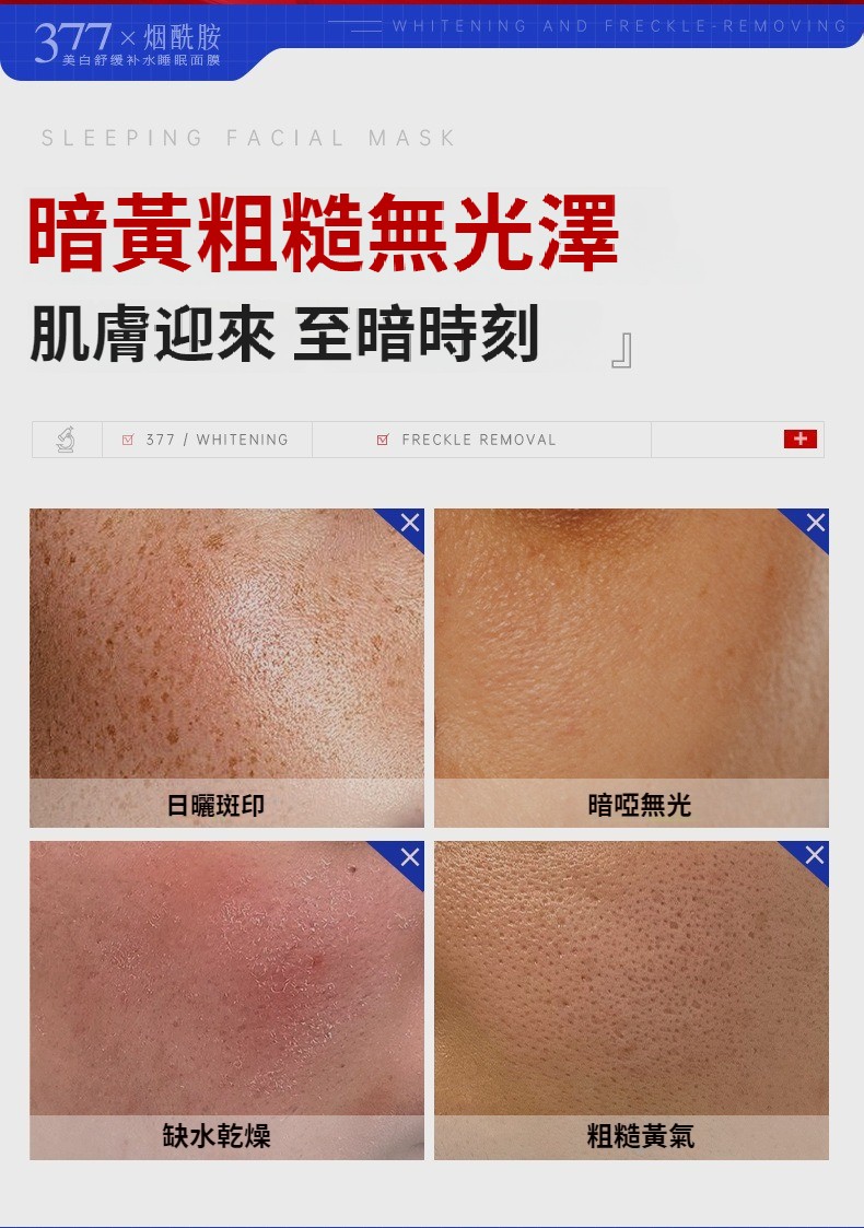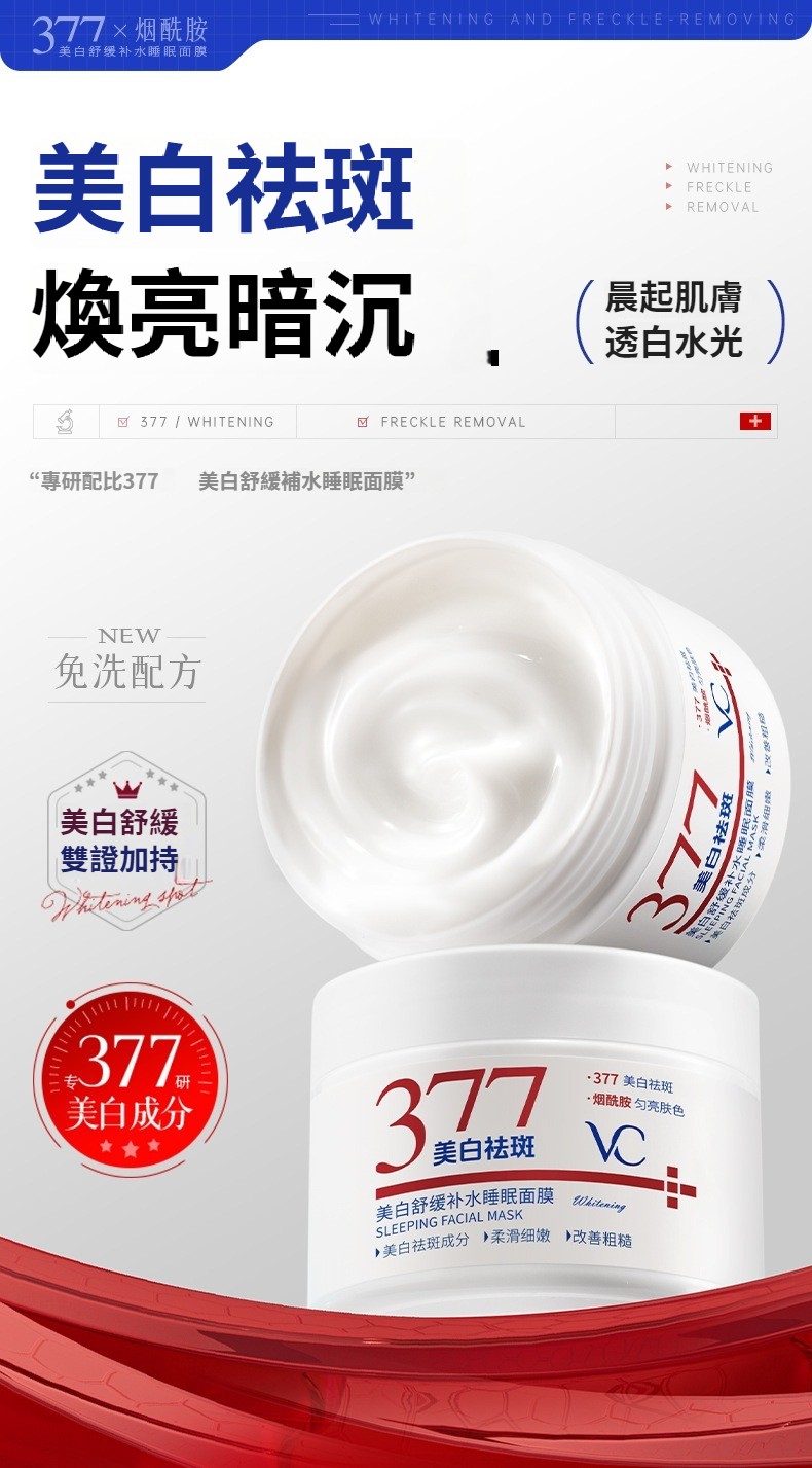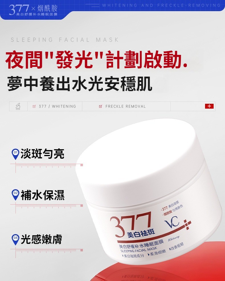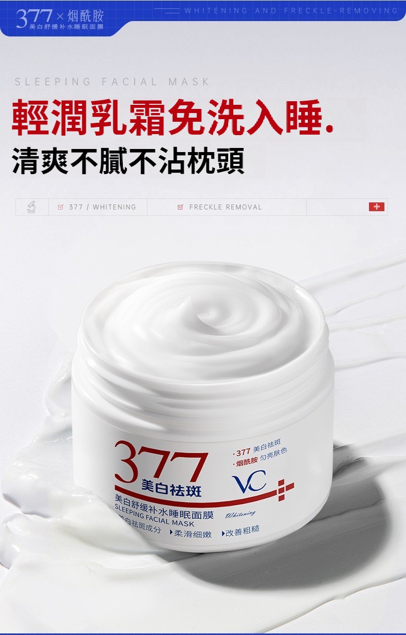 377維C美白舒緩補水睡眠面膜保濕提亮去暗沉熬夜煥白塗抹免洗面膜