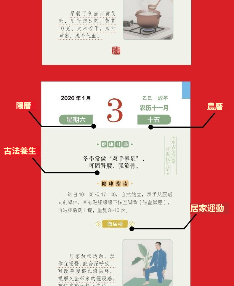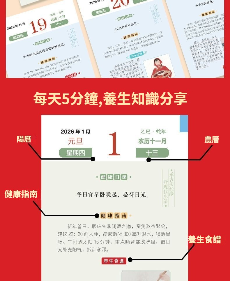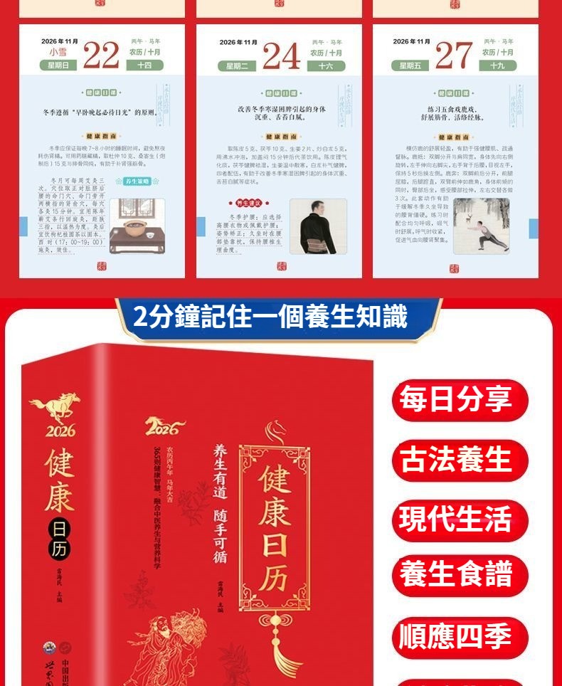 日歷2026年健康日歷 每天一個養生知識將養生智慧 拆解為日常指引