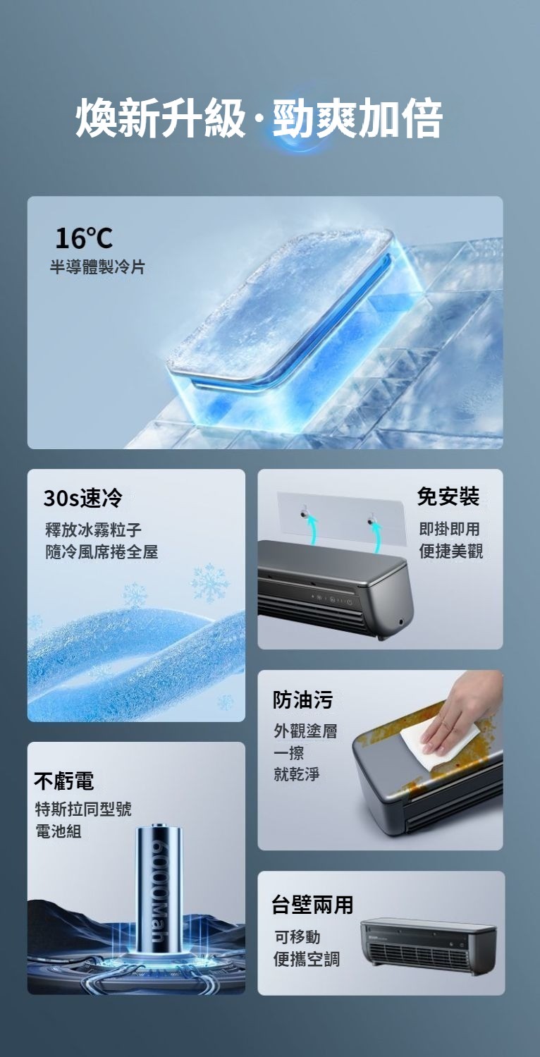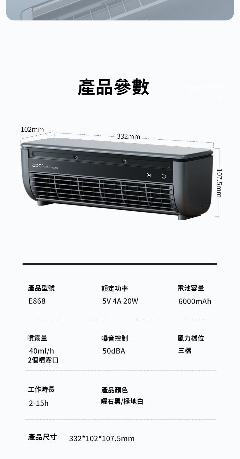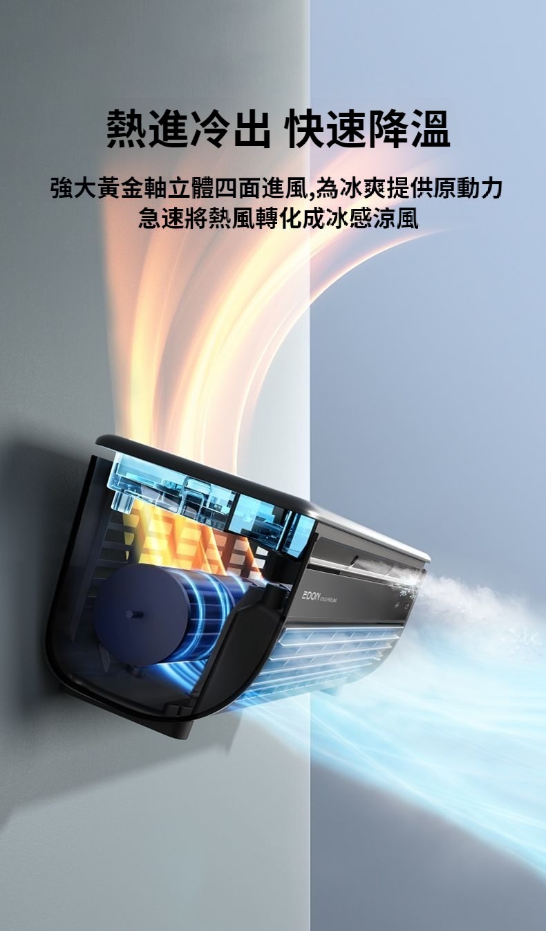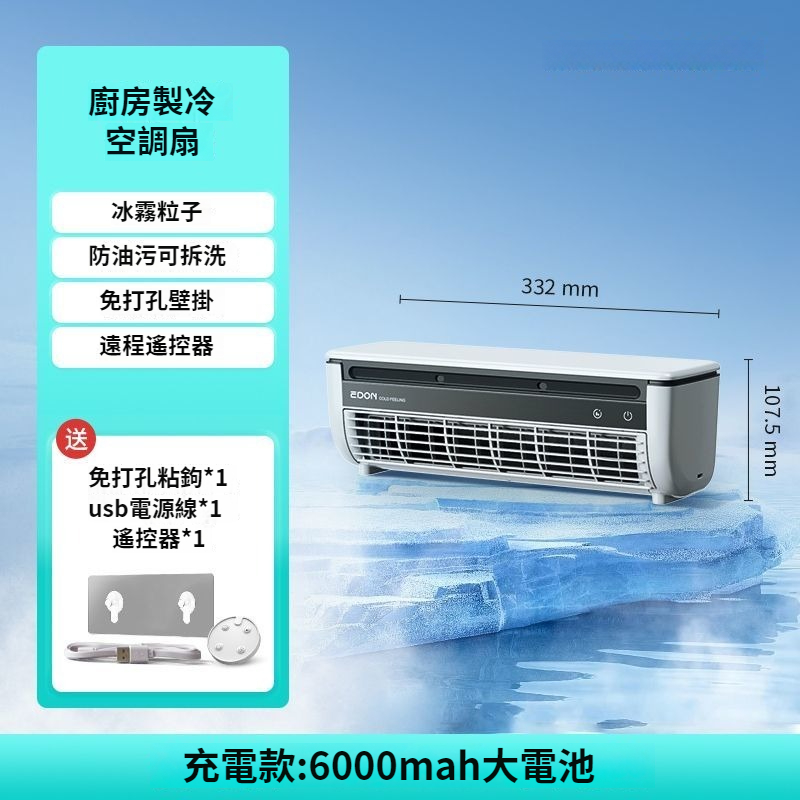 第 1 件 : 2025年新款冰霧扇E868廚房壁掛免打孔移動式空調扇
