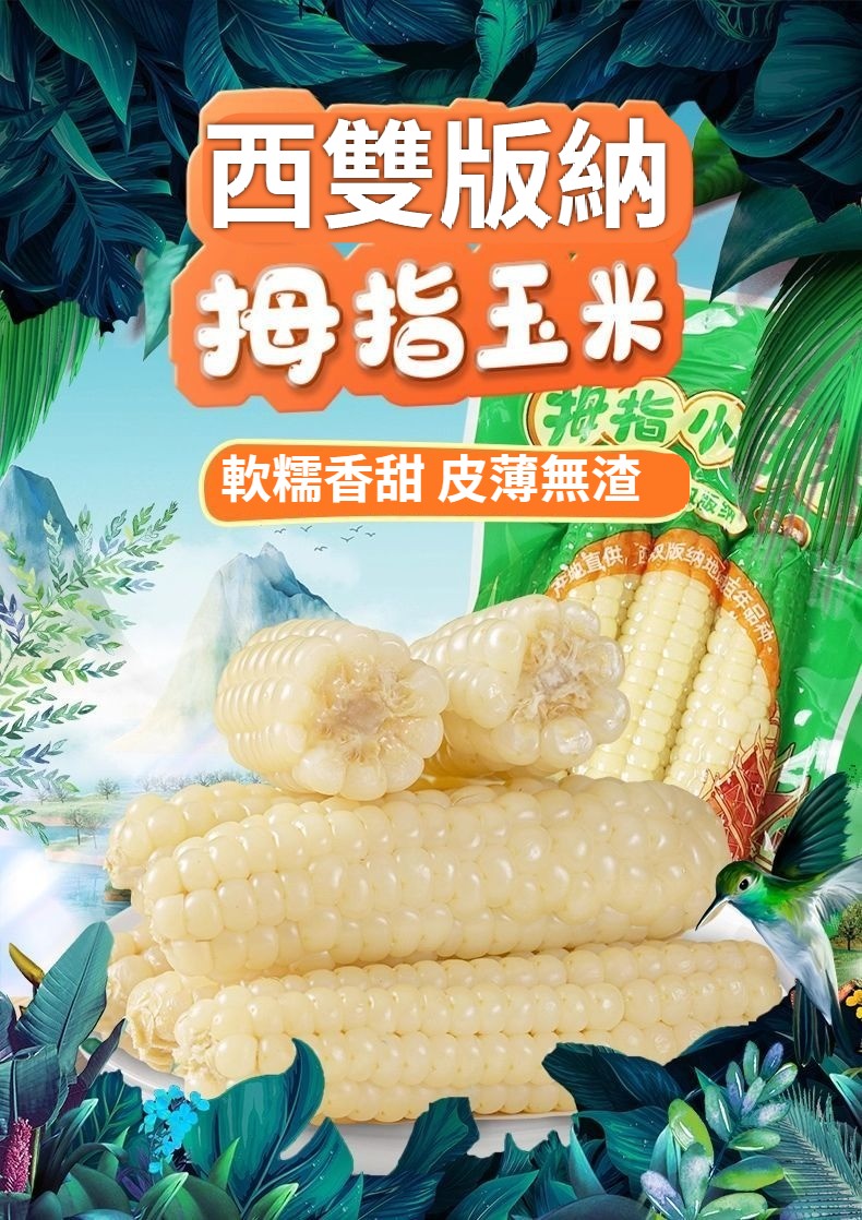 西雙版納拇指玉米糯手指小玉米兒童新鮮甜嫩糯玉米茬真空 NT$ 699