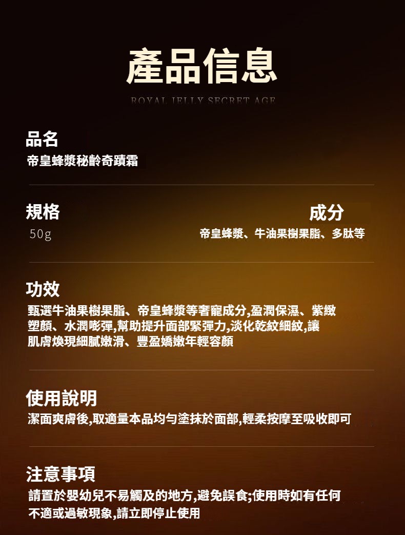 帝皇蜂漿秘齡奇蹟霜養顏保濕淡化抗皺提拉緊緻乳霜