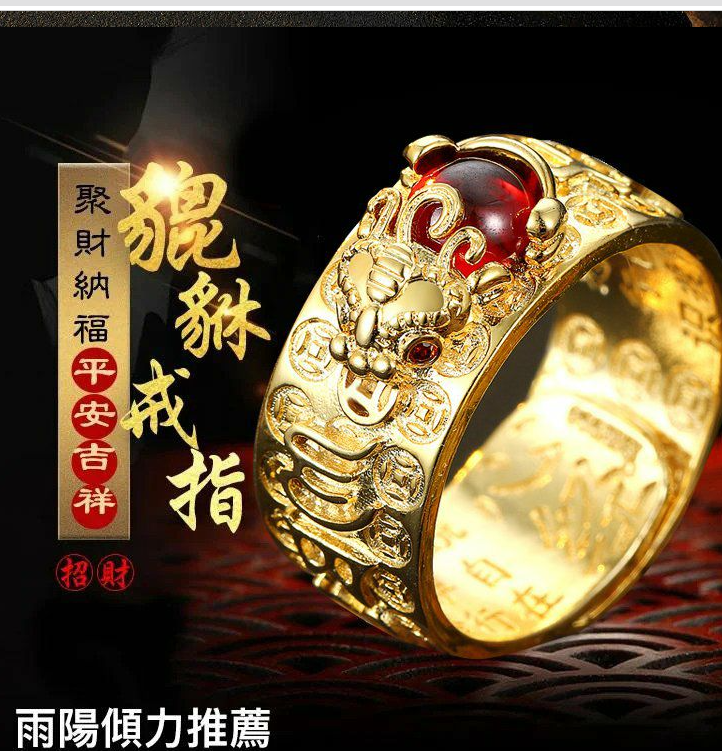 ①開運貔貅戒指金色1枚 ②犀利士1粒