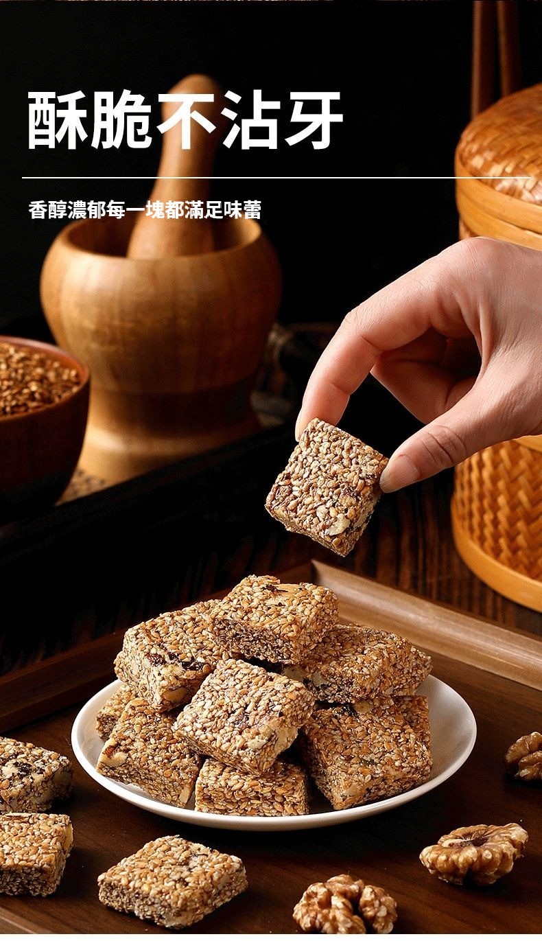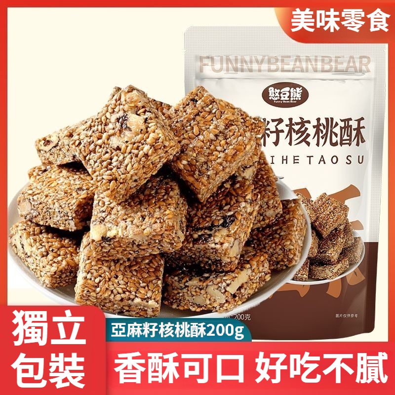 憨豆熊 亞麻籽核桃酥200g袋裝核桃仁芝麻糕獨立小包零食品休閒