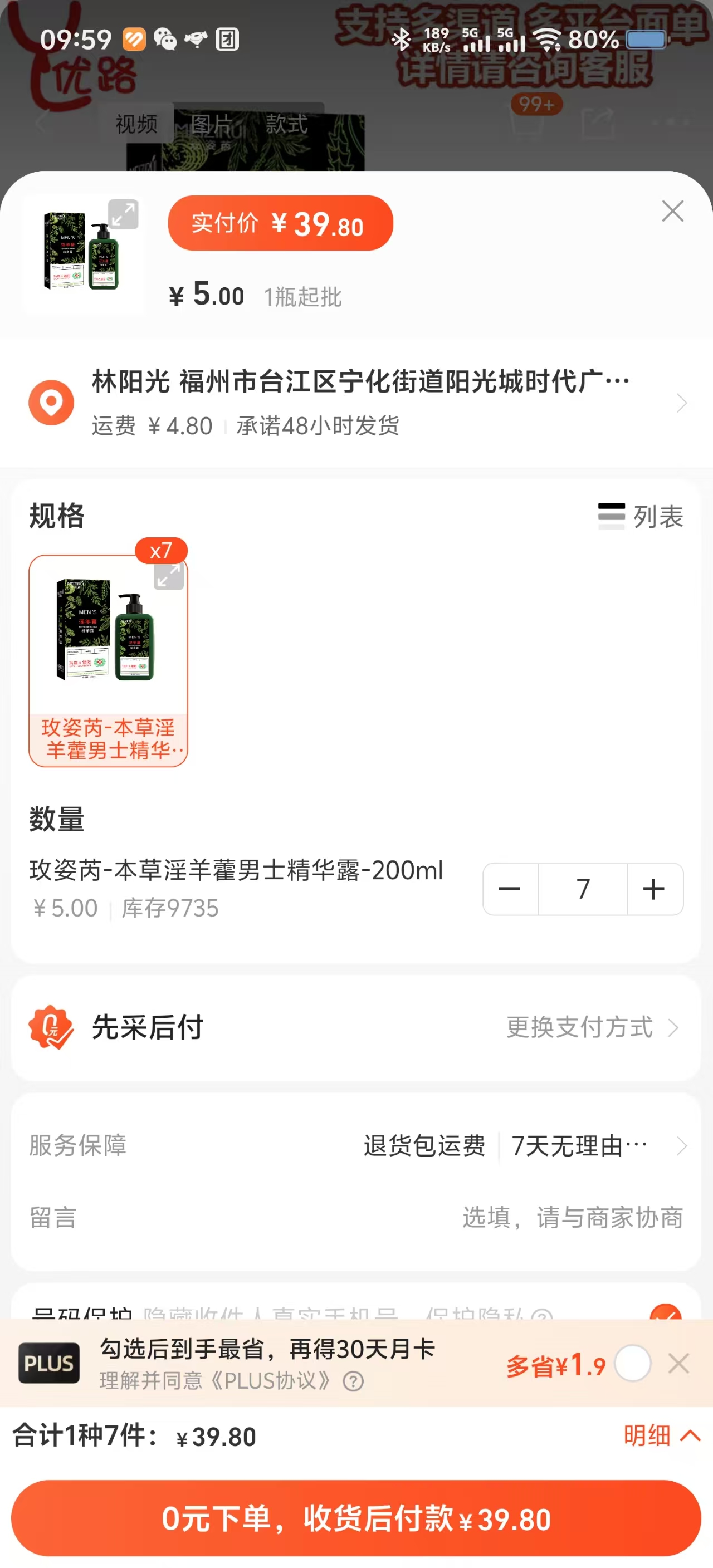 ①玫姿芮淫羊藿男士精华露【7瓶】+②華佗鎖精丸【一粒】https://qr.1688.com/s/YEFitOf4