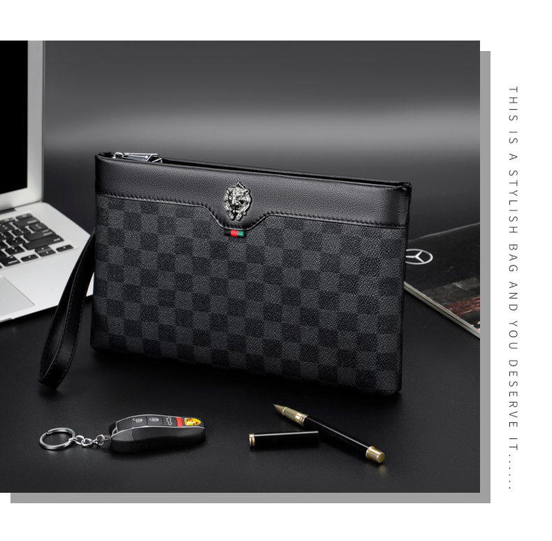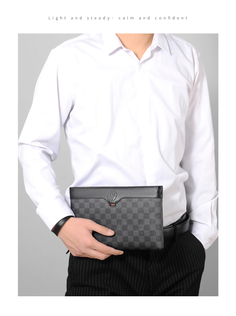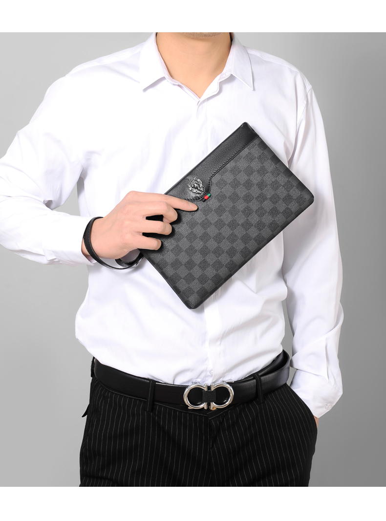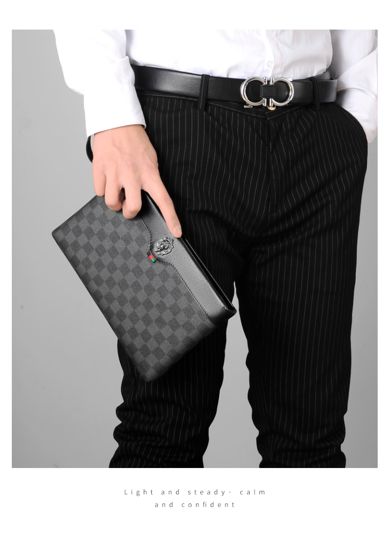 第 1 件 : 真皮男士手拿包高階信封包男手包2025新手抓包商務皮夾休閒潮
