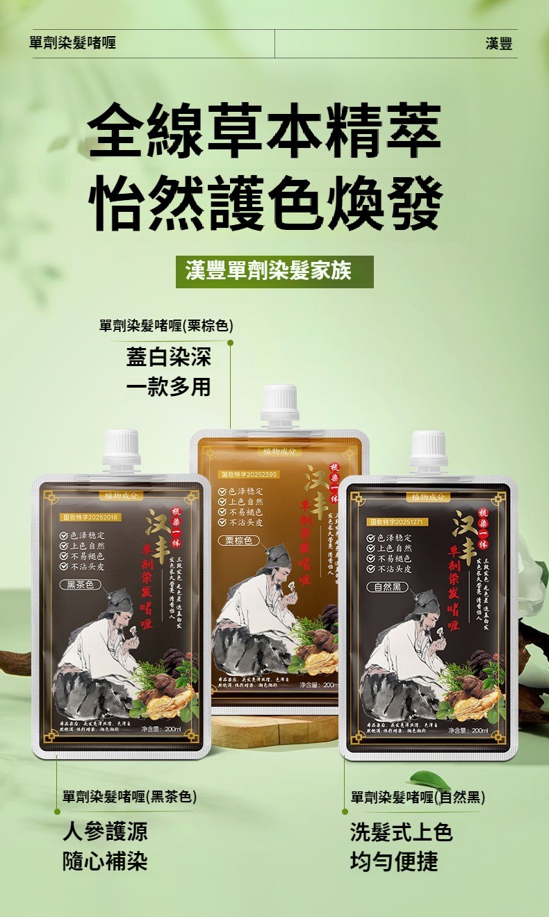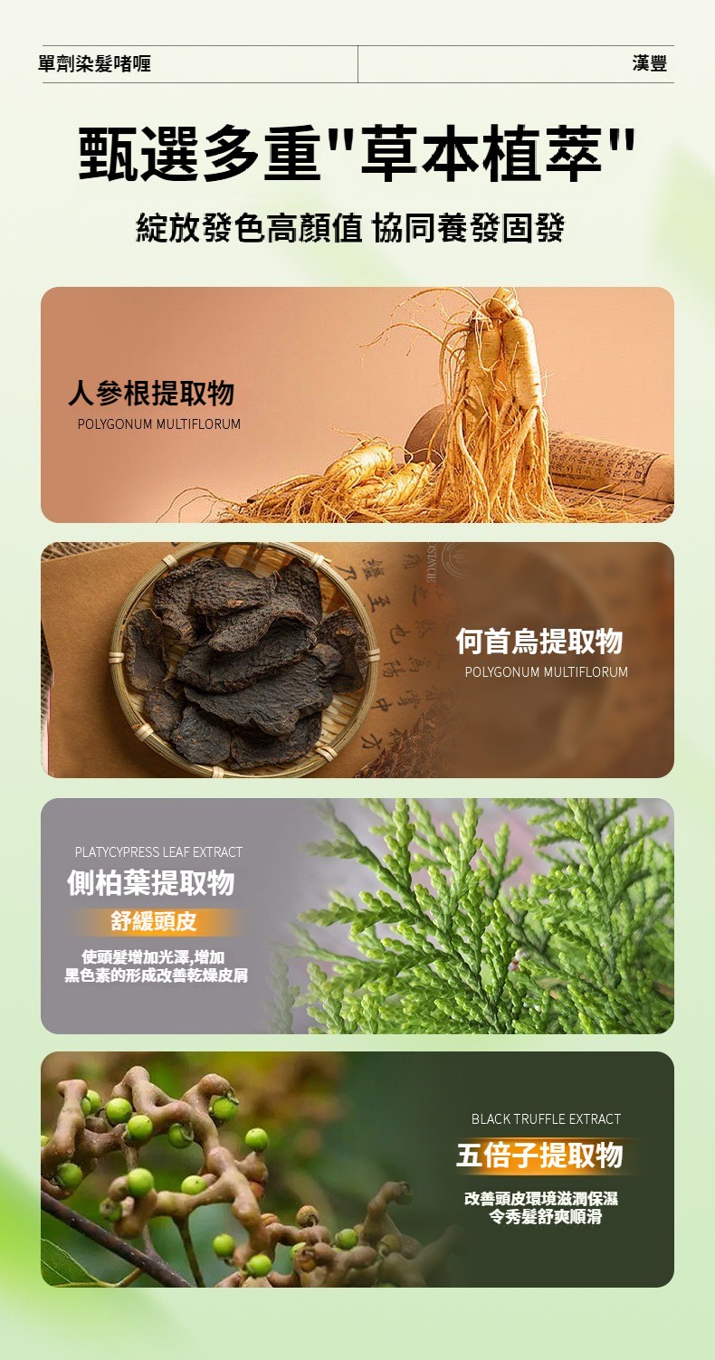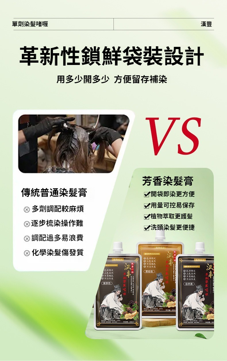 第 1 件 : 漢豐草本熬制單劑染髪膏溫和上色花香染透明包裝安全染髪劑