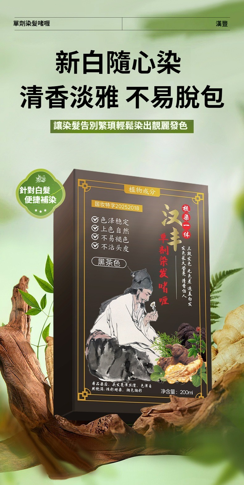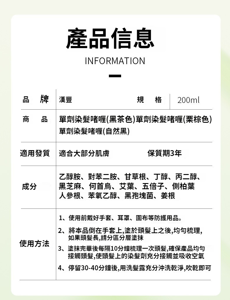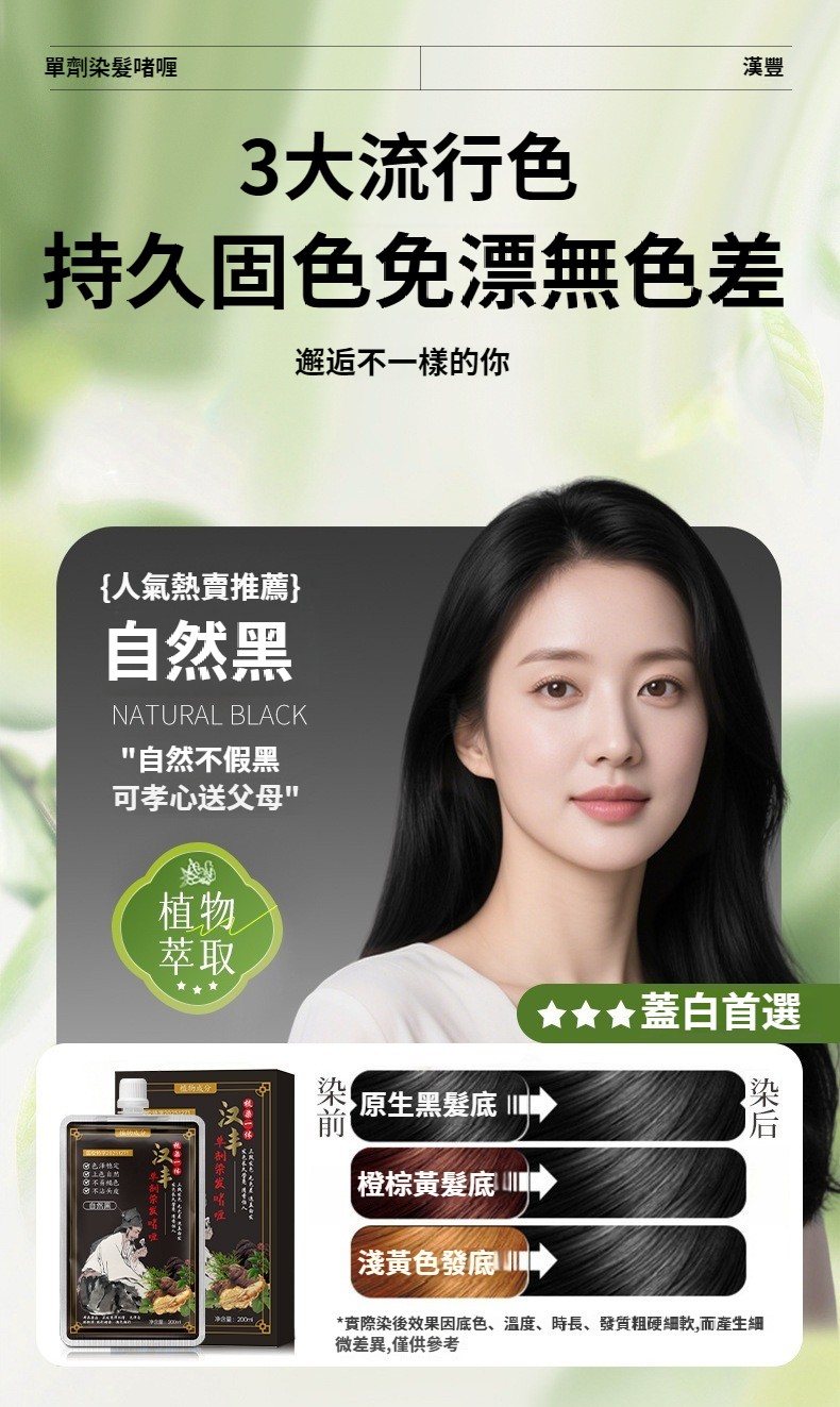第 1 件 : 漢豐草本熬制單劑染髪膏溫和上色花香染透明包裝安全染髪劑