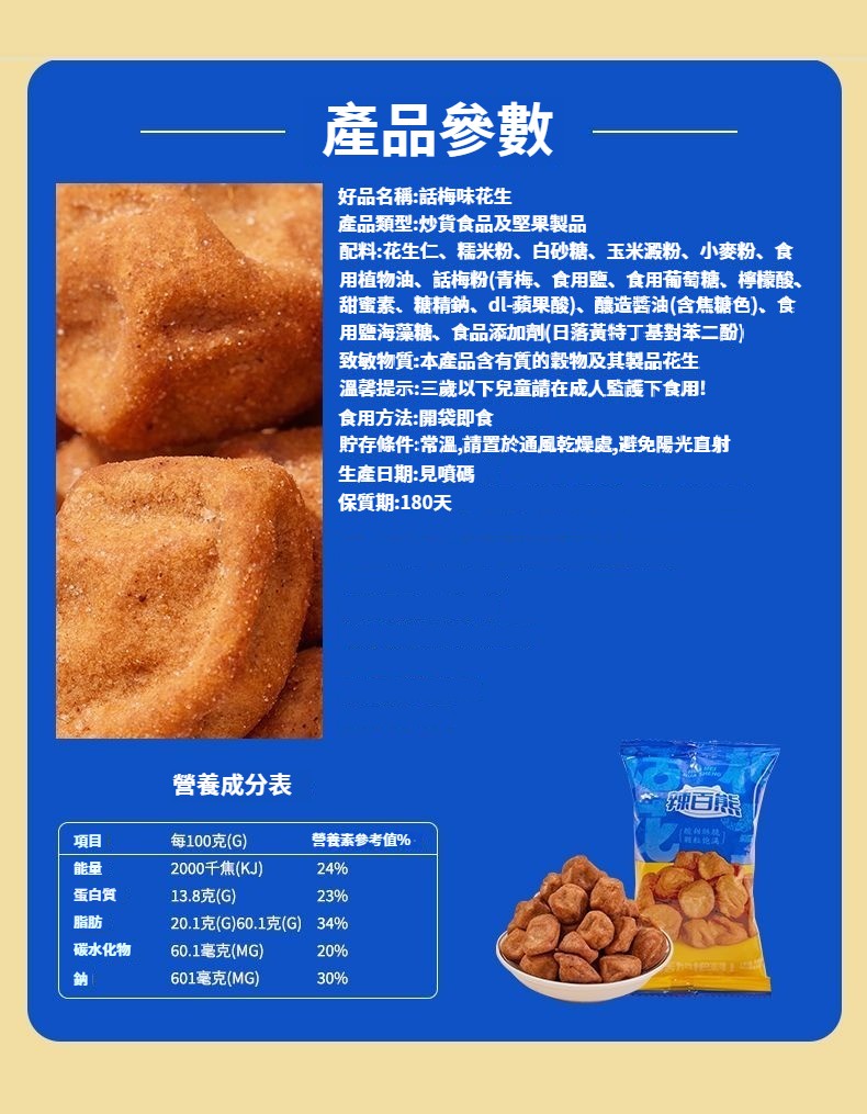 話梅花生非油炸休閑解饞小零食酸甜花生網紅零食辦公室宿舍屯糧 NT$ 799