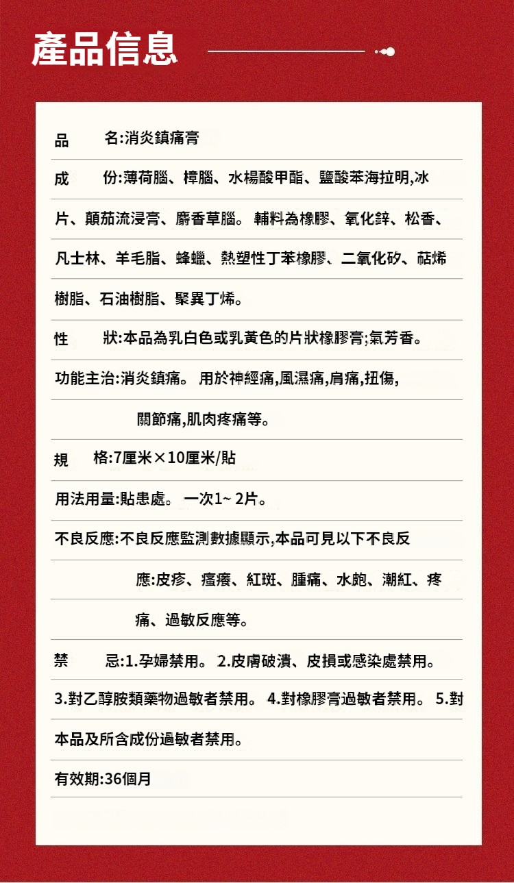 雲南白藥 消炎鎮痛膏7cm*10cm4貼 消炎鎮痛 風濕痛肩痛 扭傷關節痛 NT$ 850