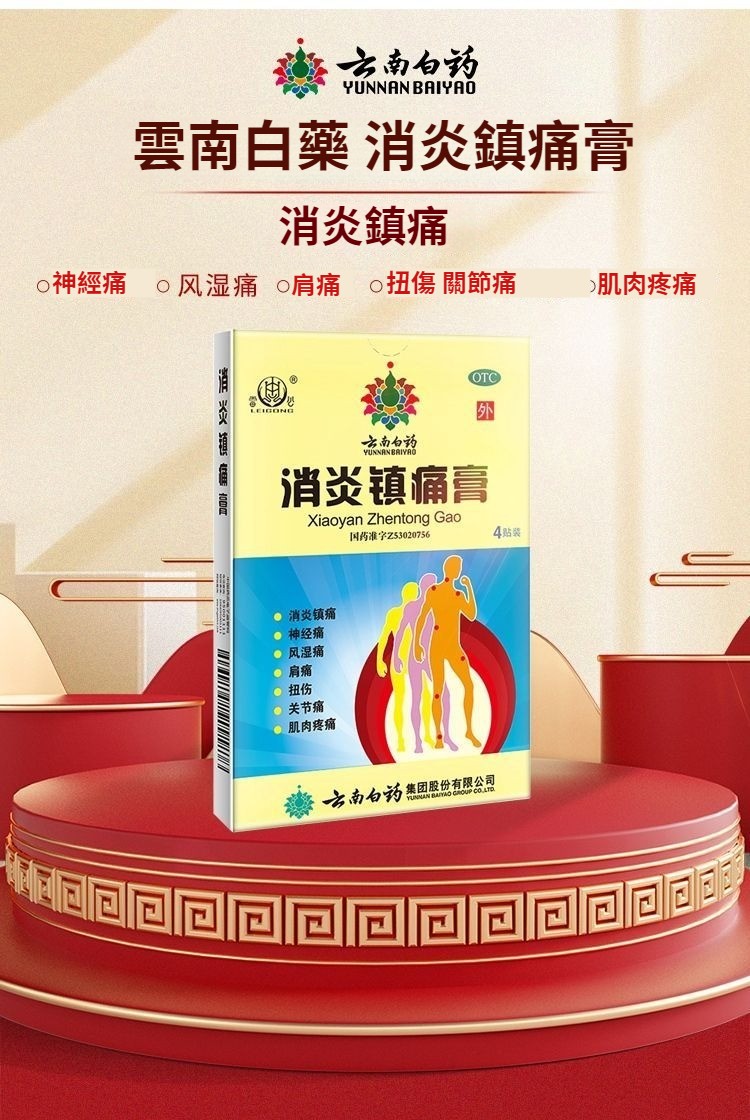 雲南白藥 消炎鎮痛膏7cm*10cm4貼 消炎鎮痛 風濕痛肩痛 扭傷關節痛