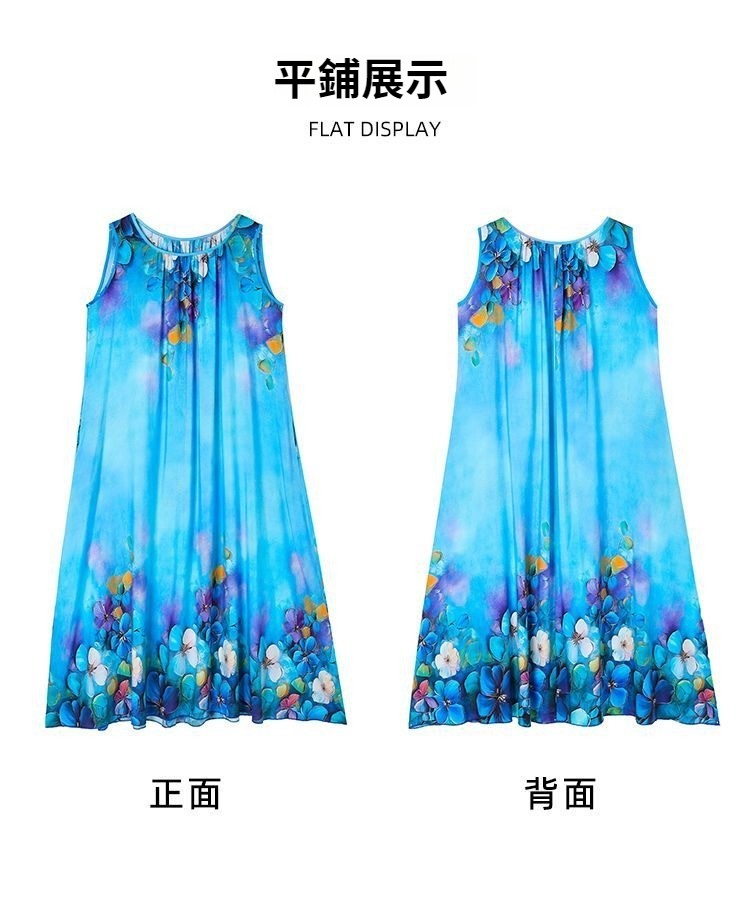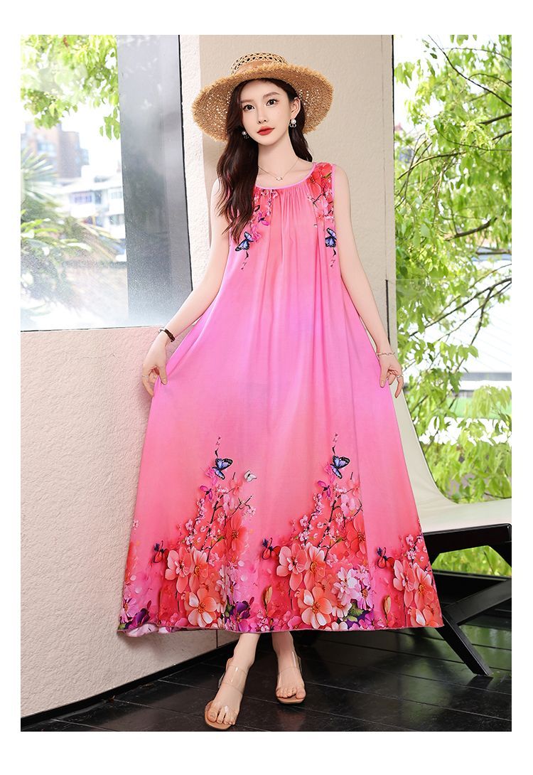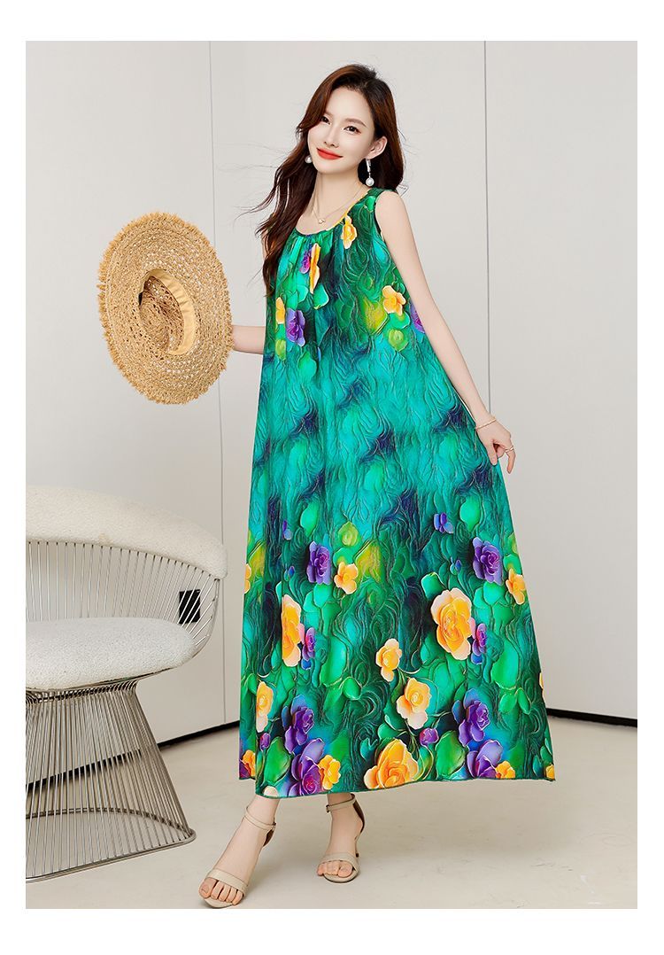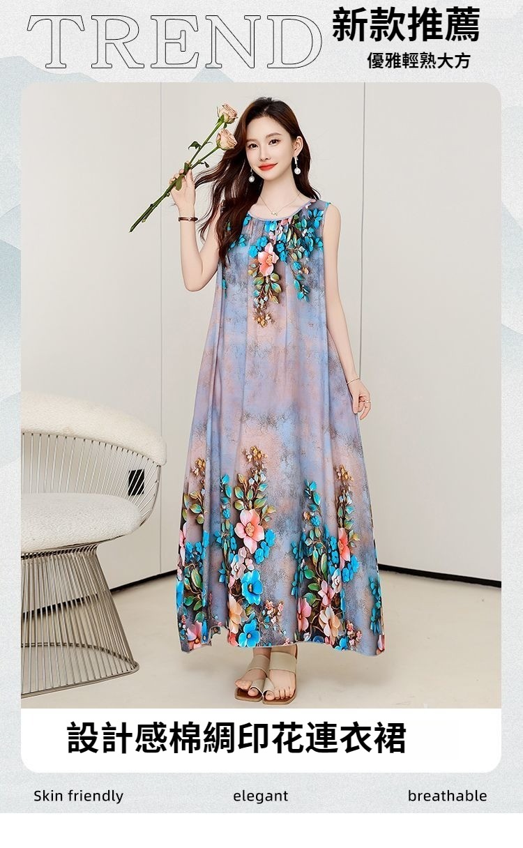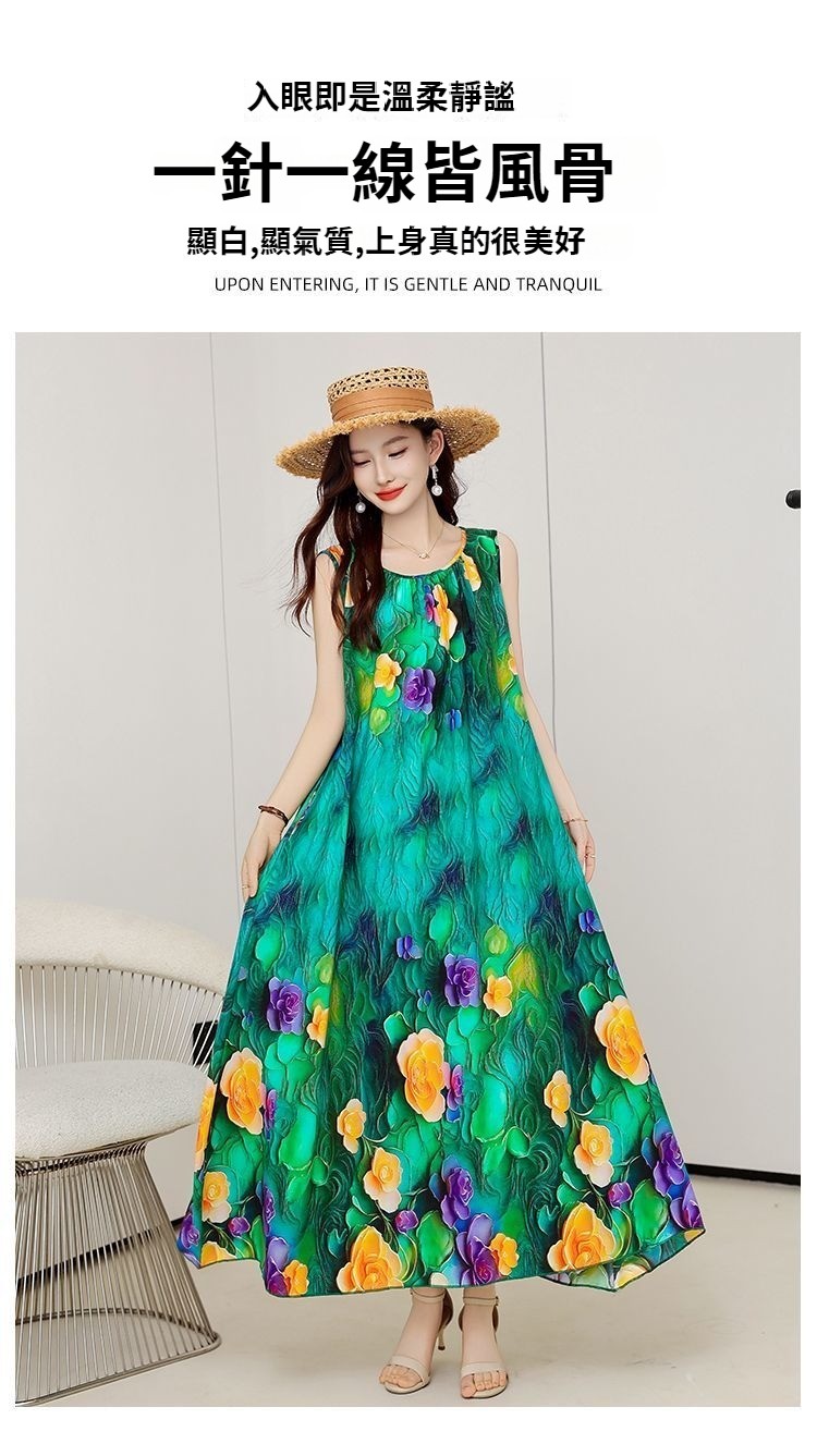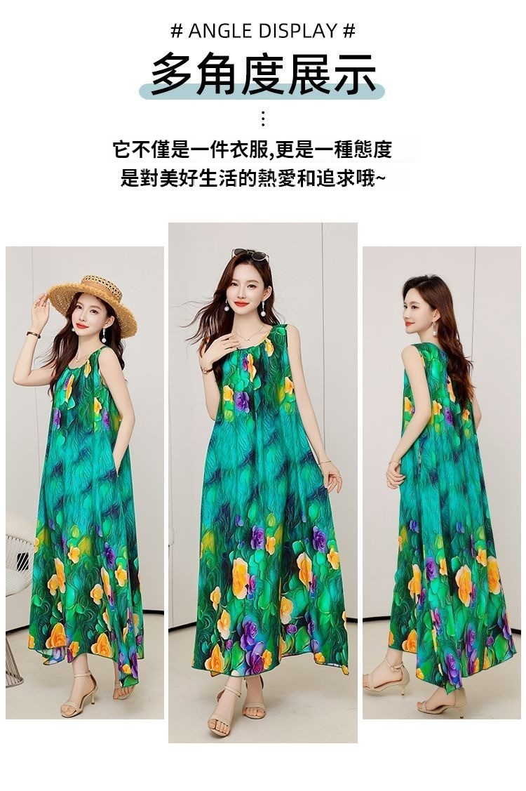 第 3 件 : 新款棉綢連衣裙年輕人胖m無袖連衣裙220斤大碼外穿人造棉過膝長裙