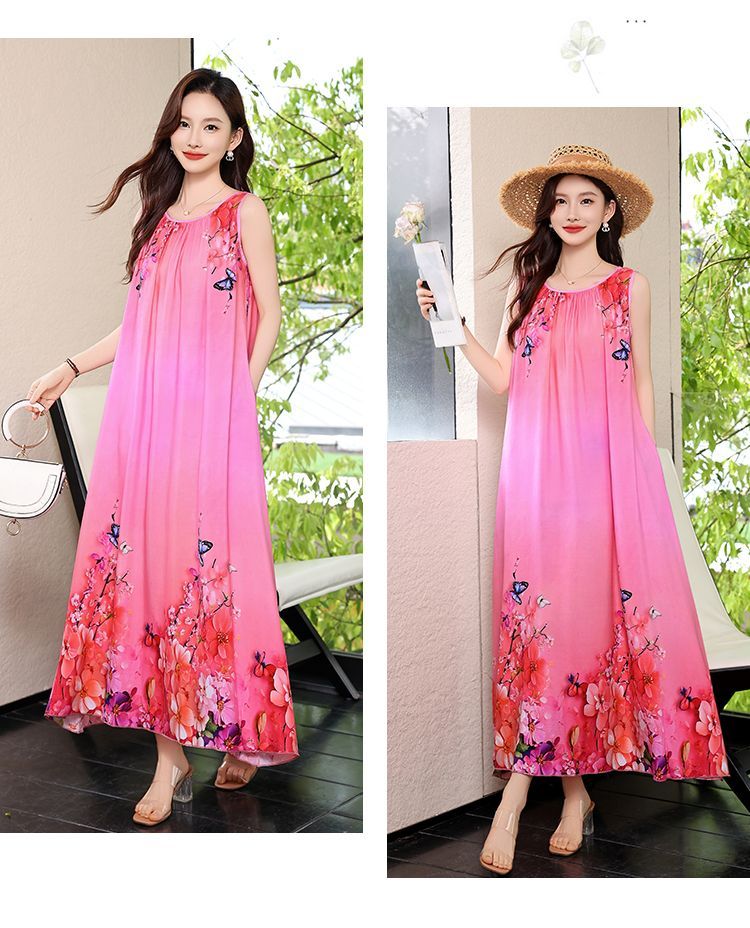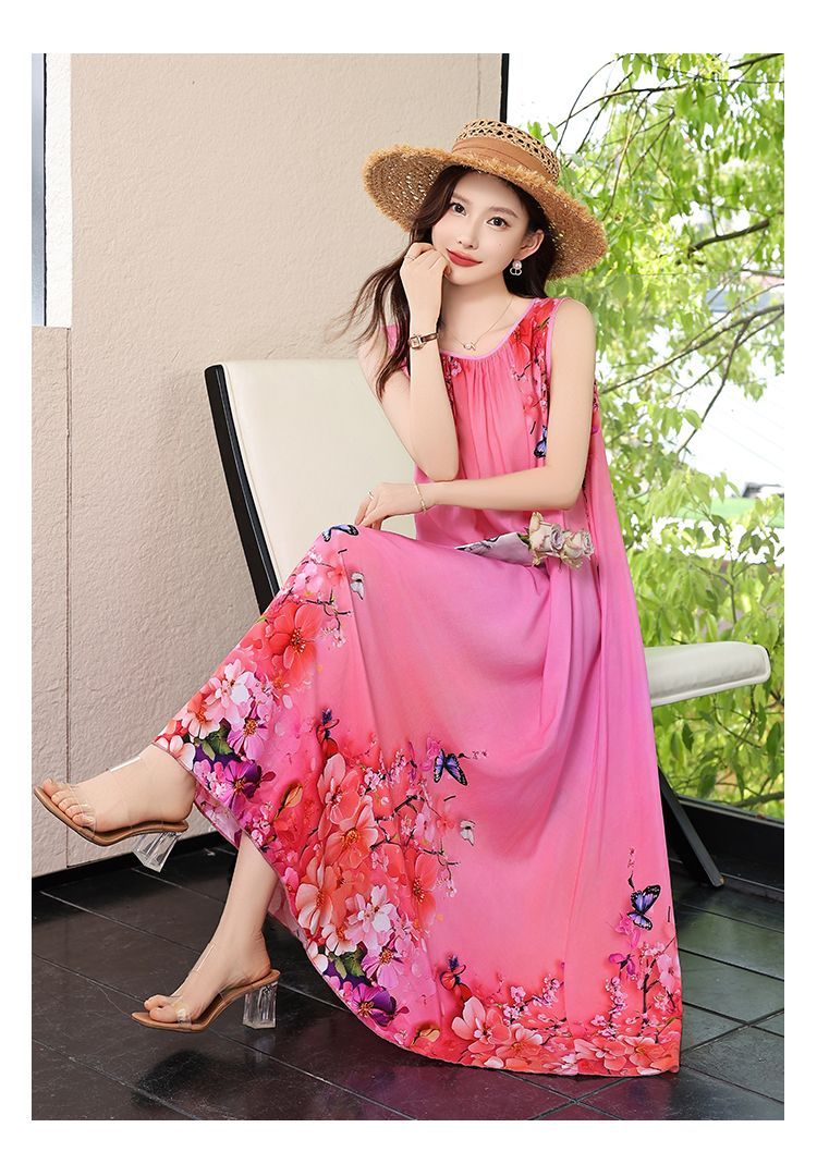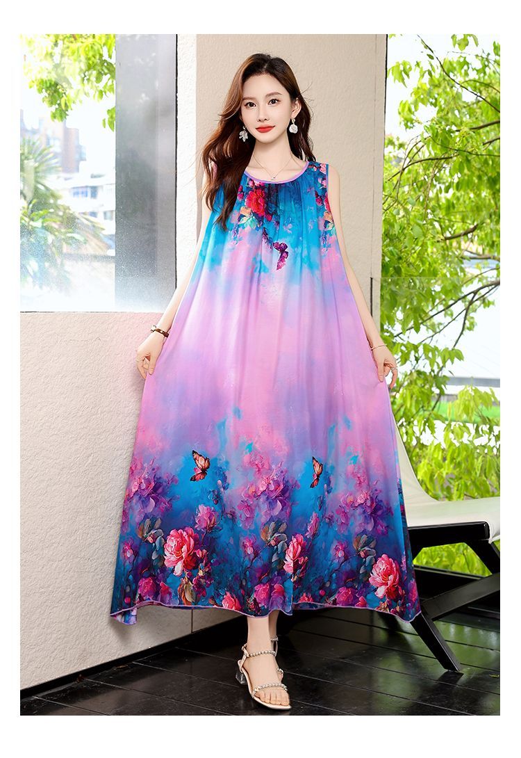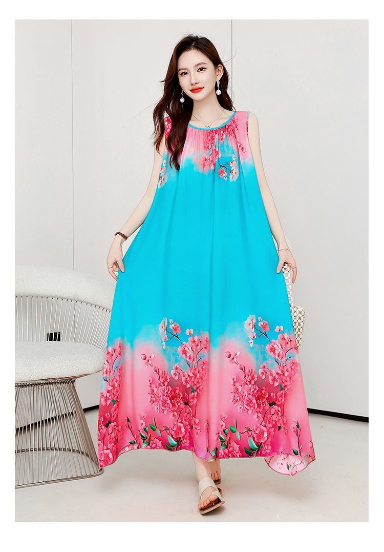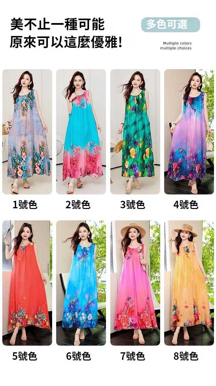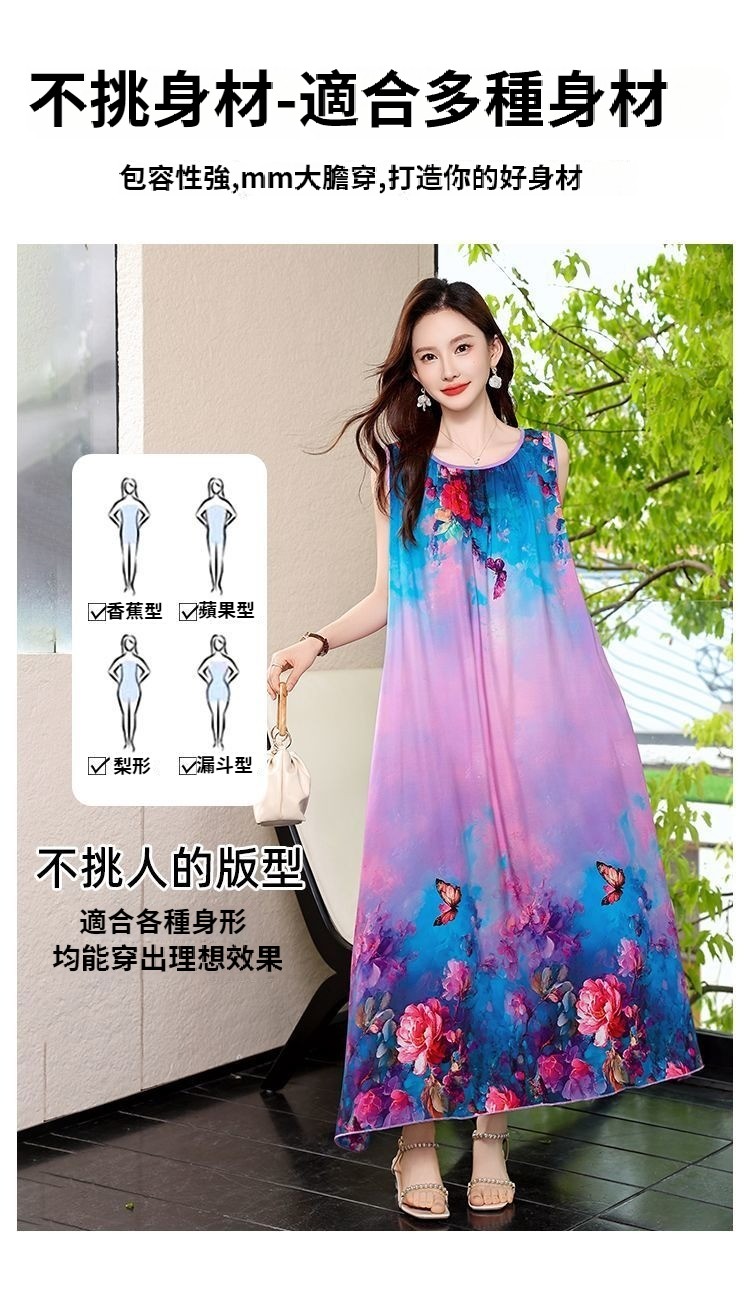 第 3 件 : 新款棉綢連衣裙年輕人胖m無袖連衣裙220斤大碼外穿人造棉過膝長裙