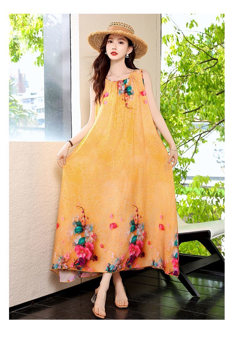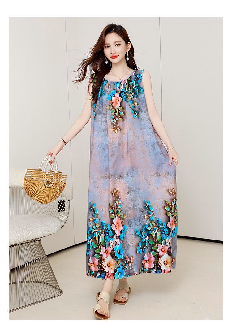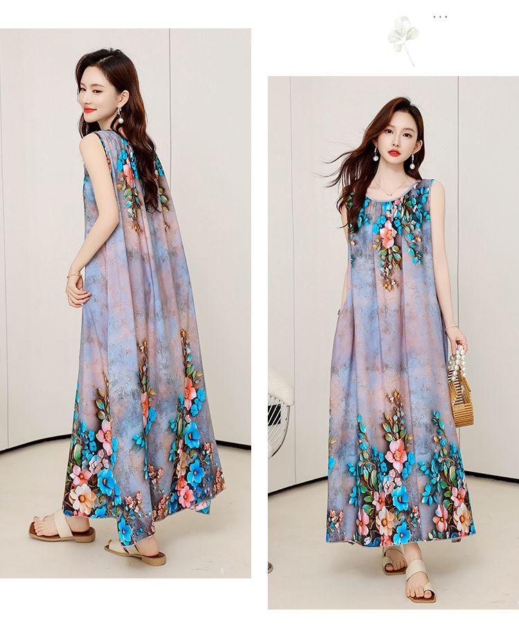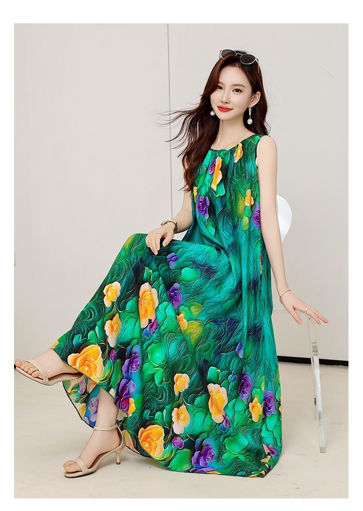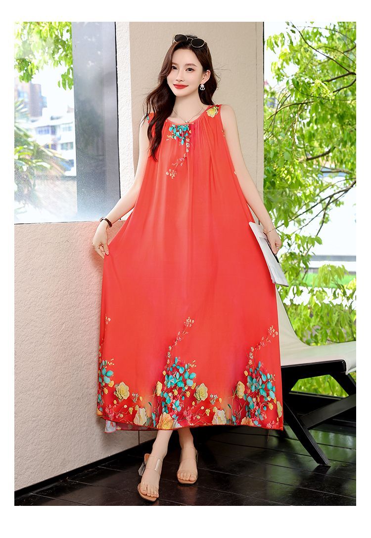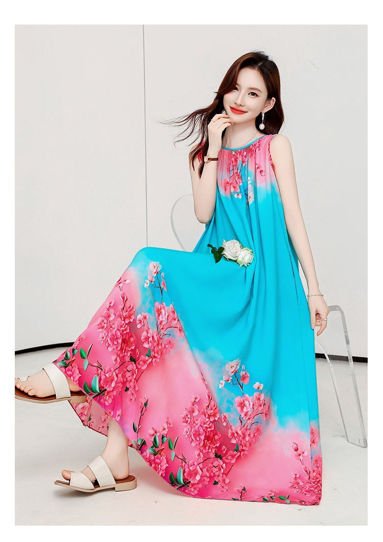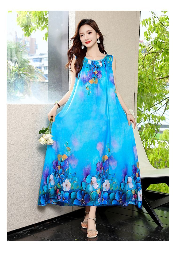 第 3 件 : 新款棉綢連衣裙年輕人胖m無袖連衣裙220斤大碼外穿人造棉過膝長裙