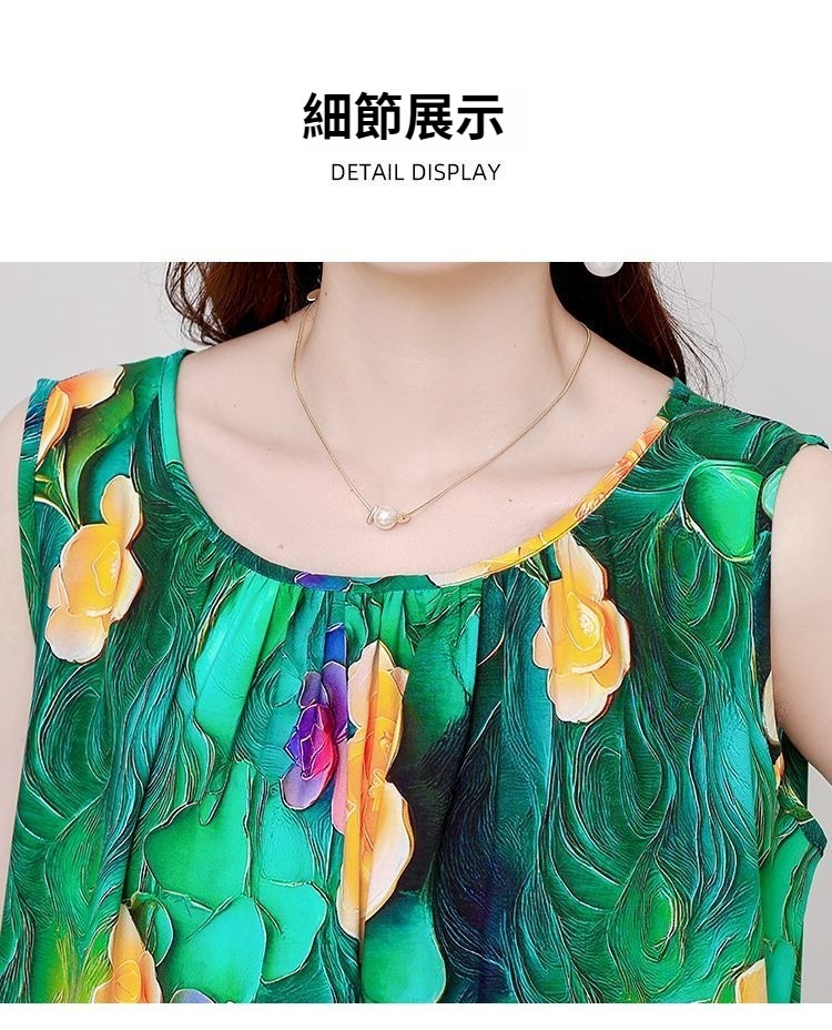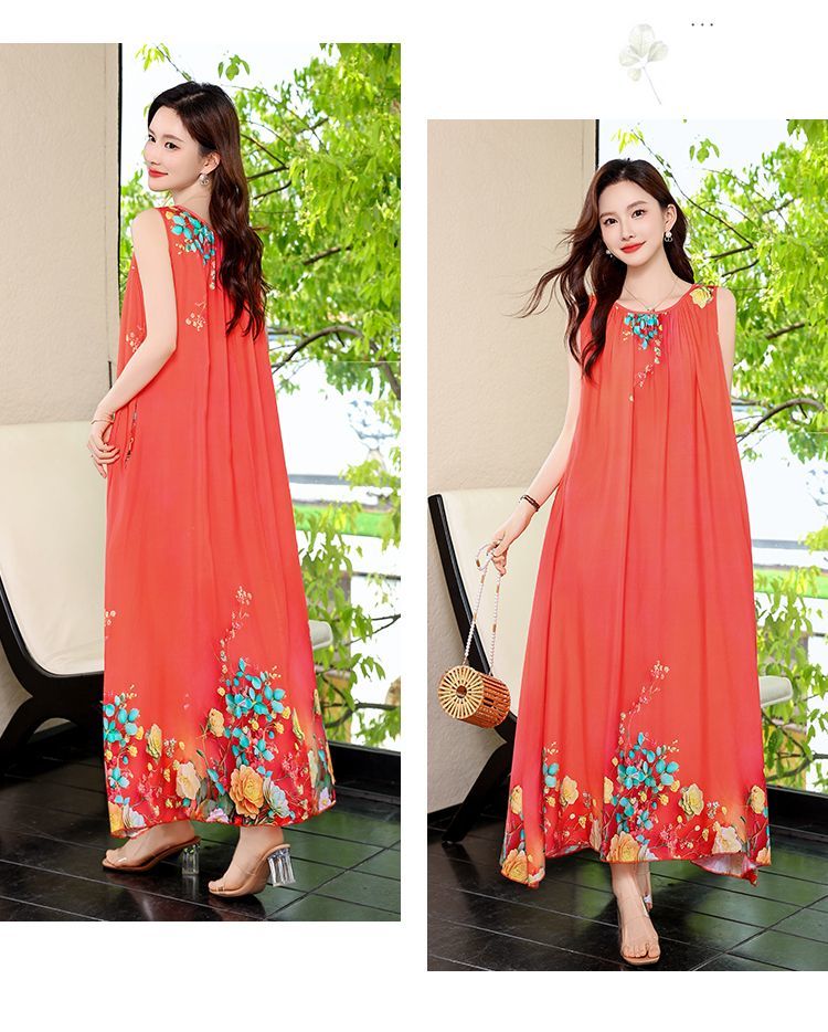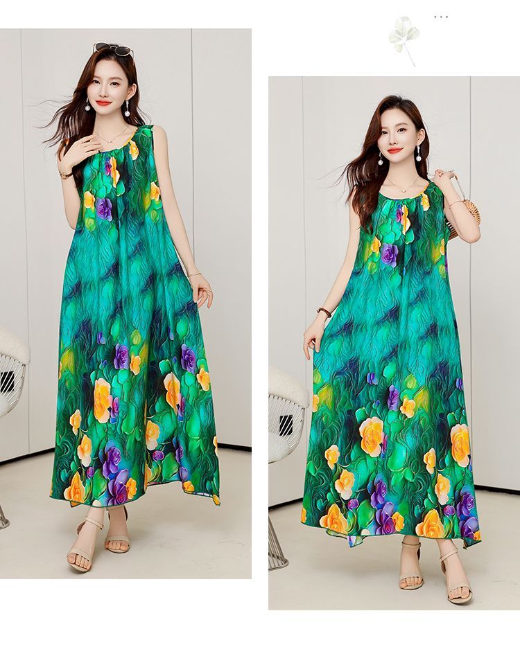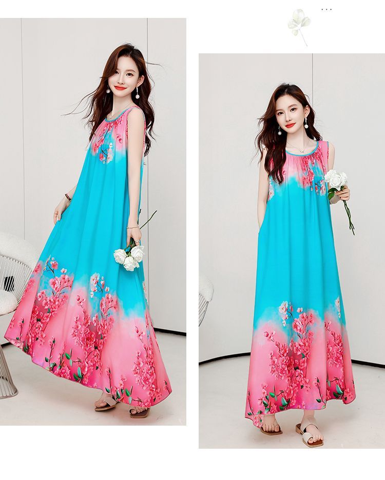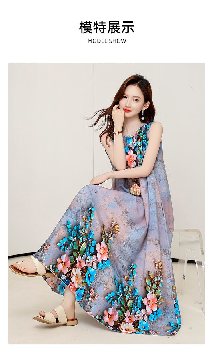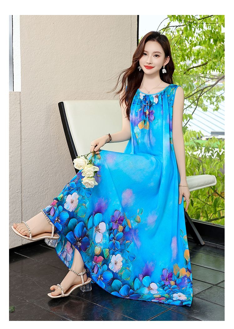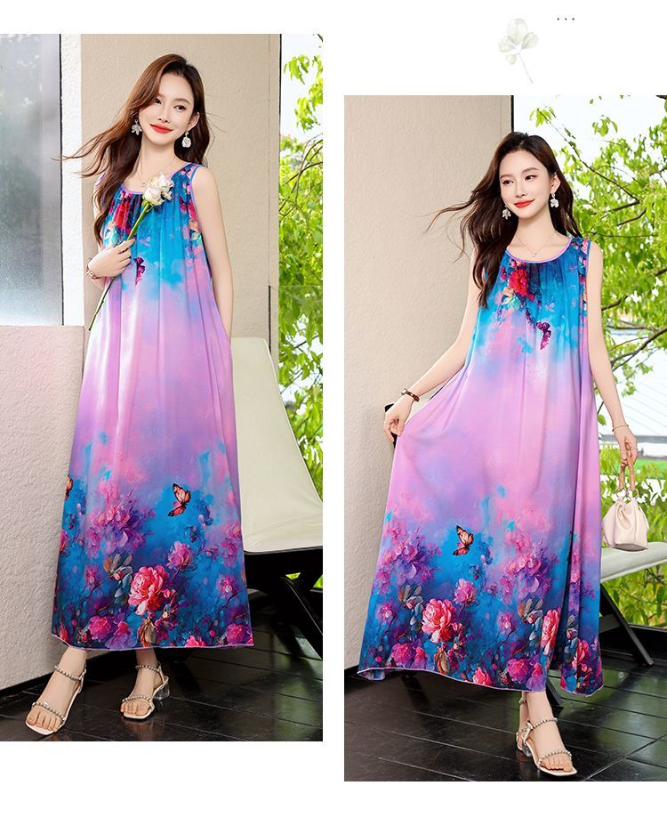第 3 件 : 新款棉綢連衣裙年輕人胖m無袖連衣裙220斤大碼外穿人造棉過膝長裙