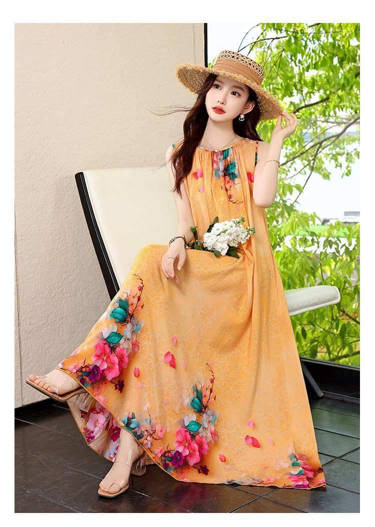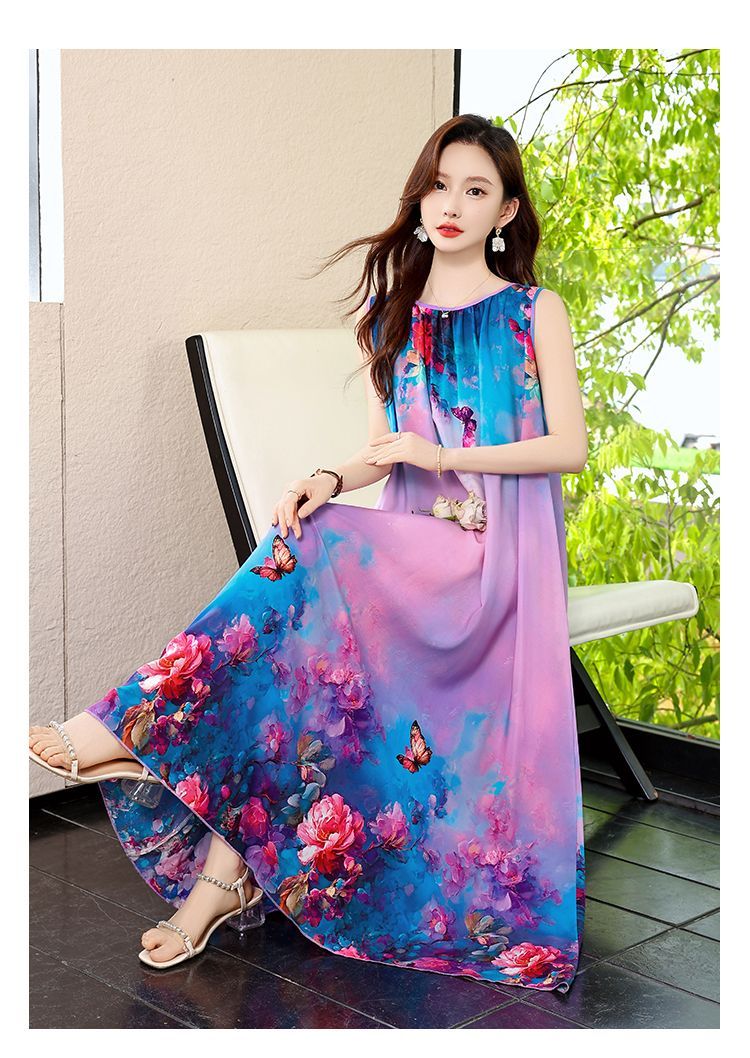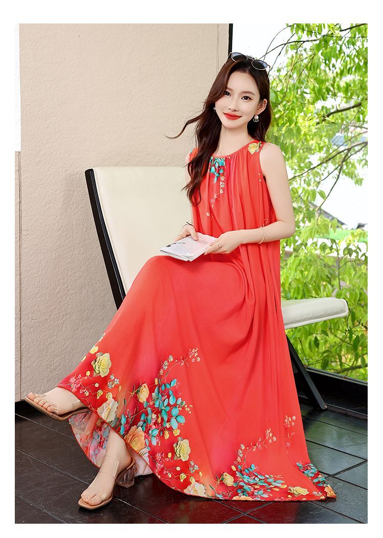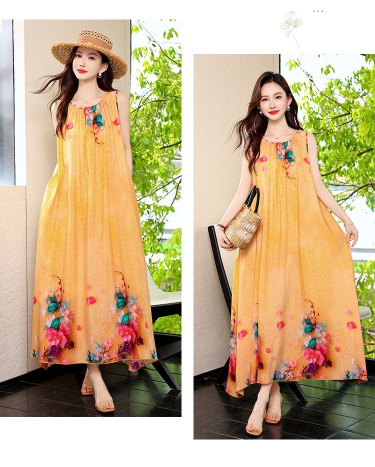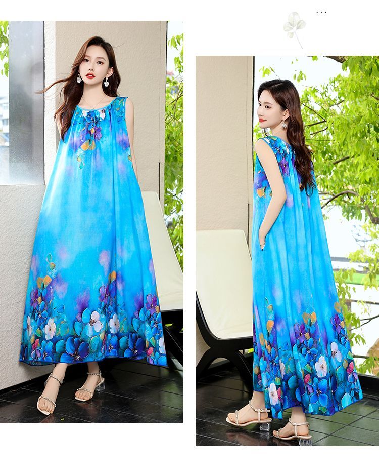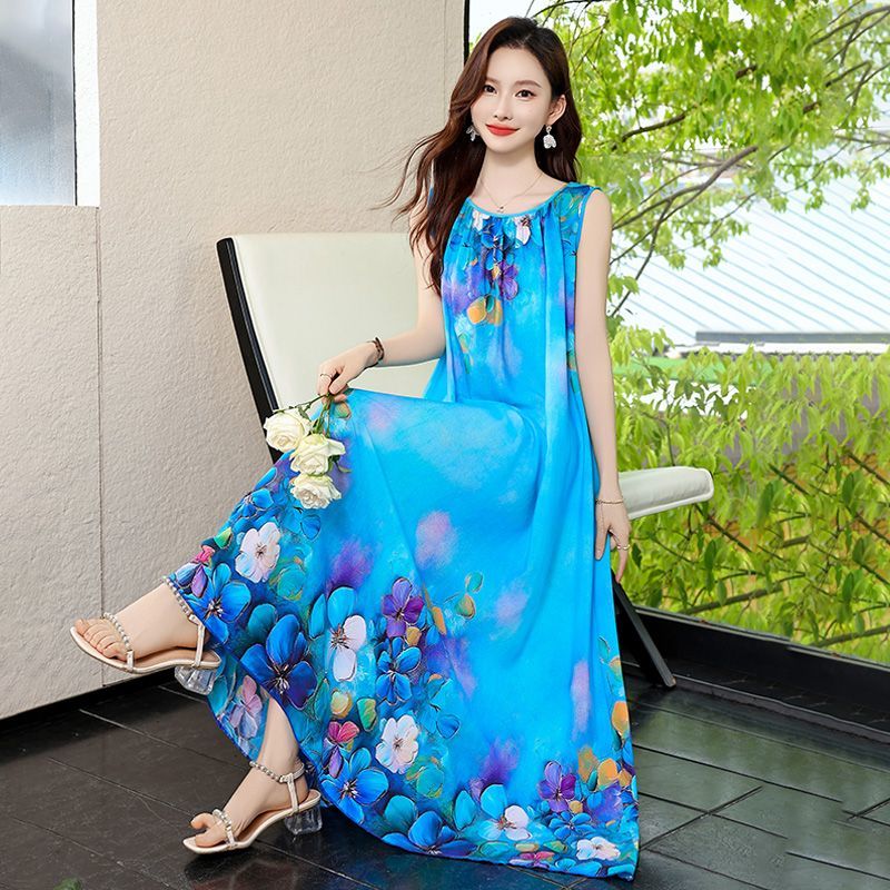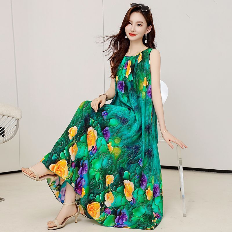 第 3 件 : 新款棉綢連衣裙年輕人胖m無袖連衣裙220斤大碼外穿人造棉過膝長裙