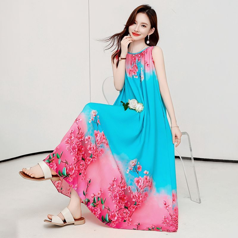 第 1 件 : 新款棉綢連衣裙年輕人胖m無袖連衣裙220斤大碼外穿人造棉過膝長裙