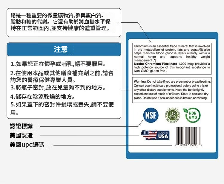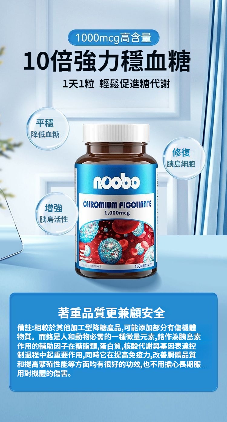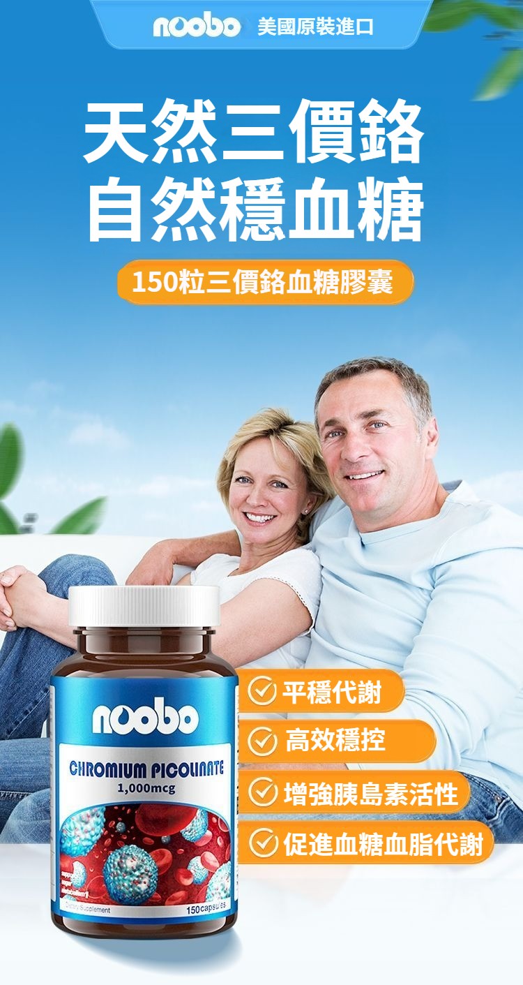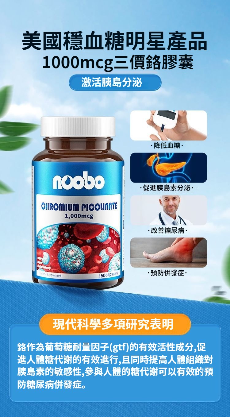 美國NOOBO進口血糖平衡片鉻元素150粒膠囊三價鉻非苦瓜中老年營養
