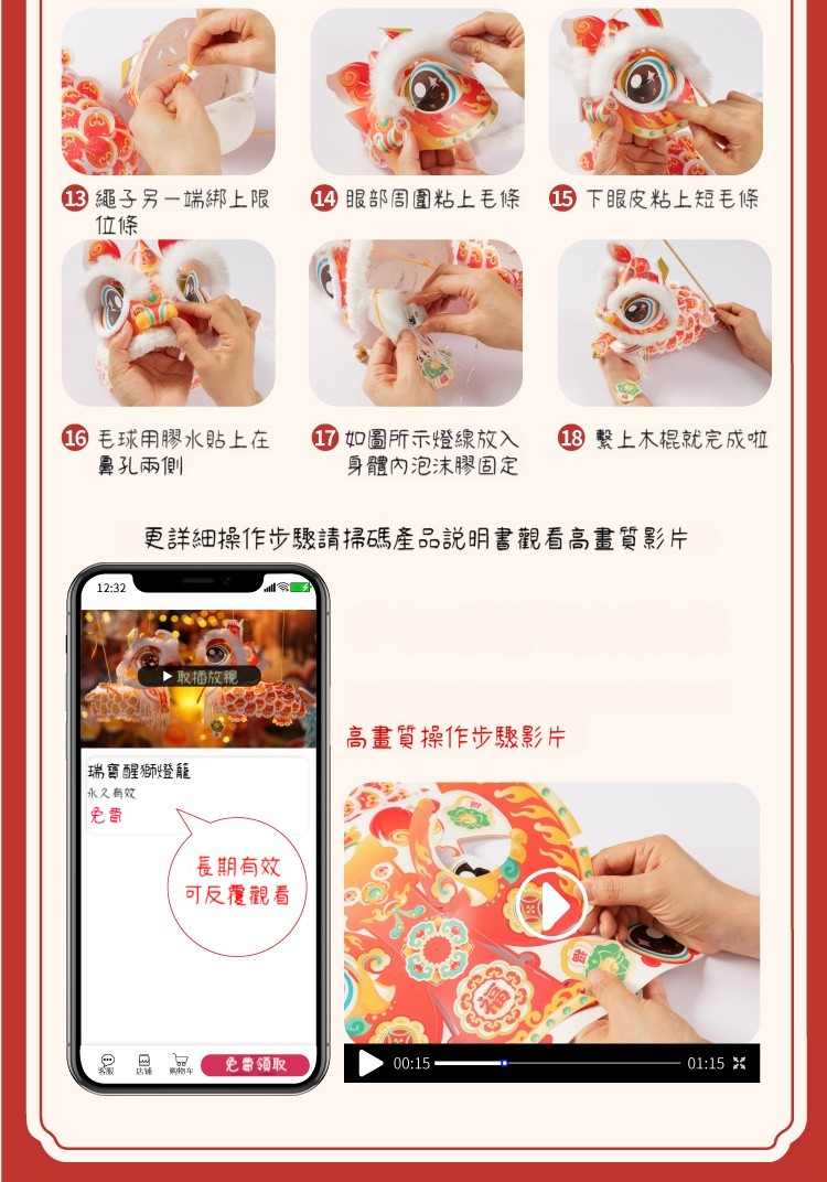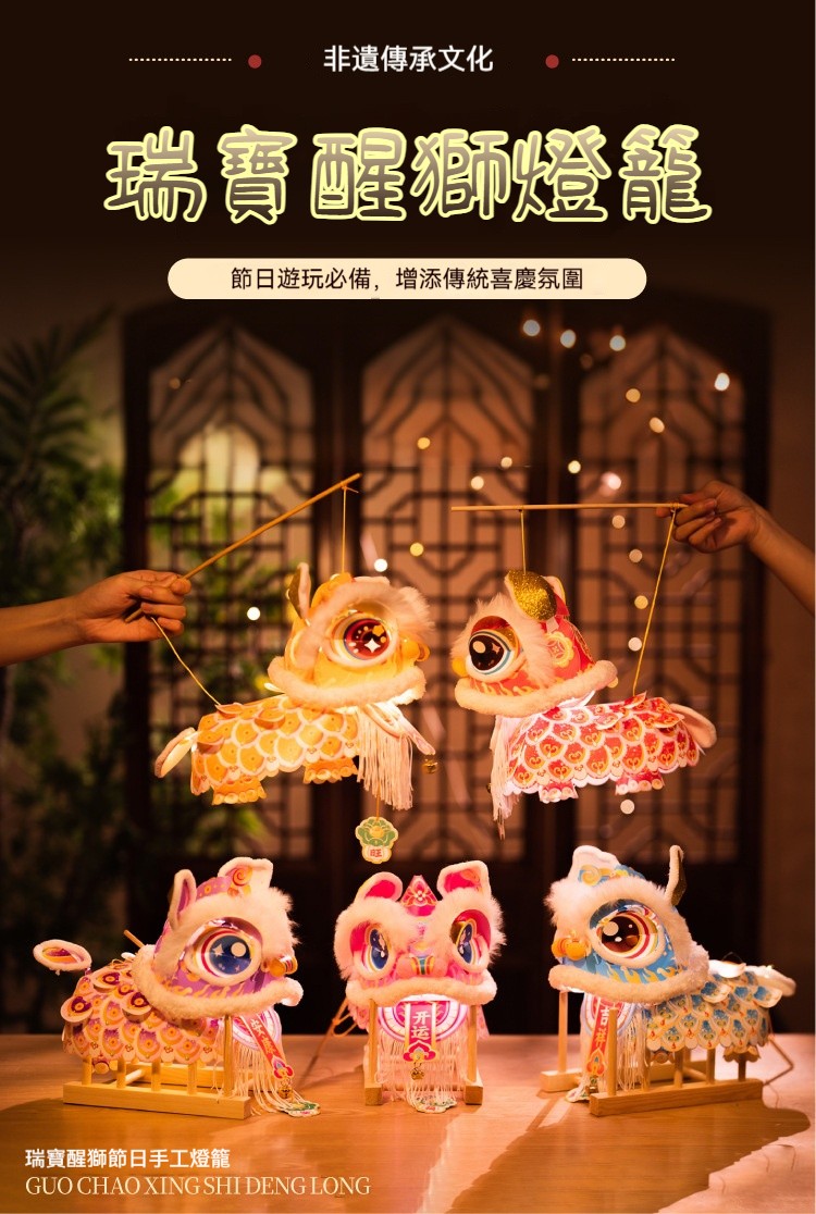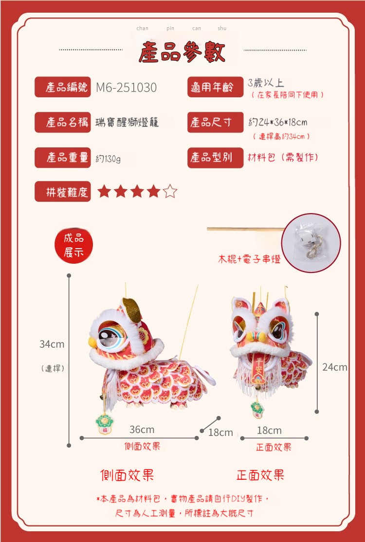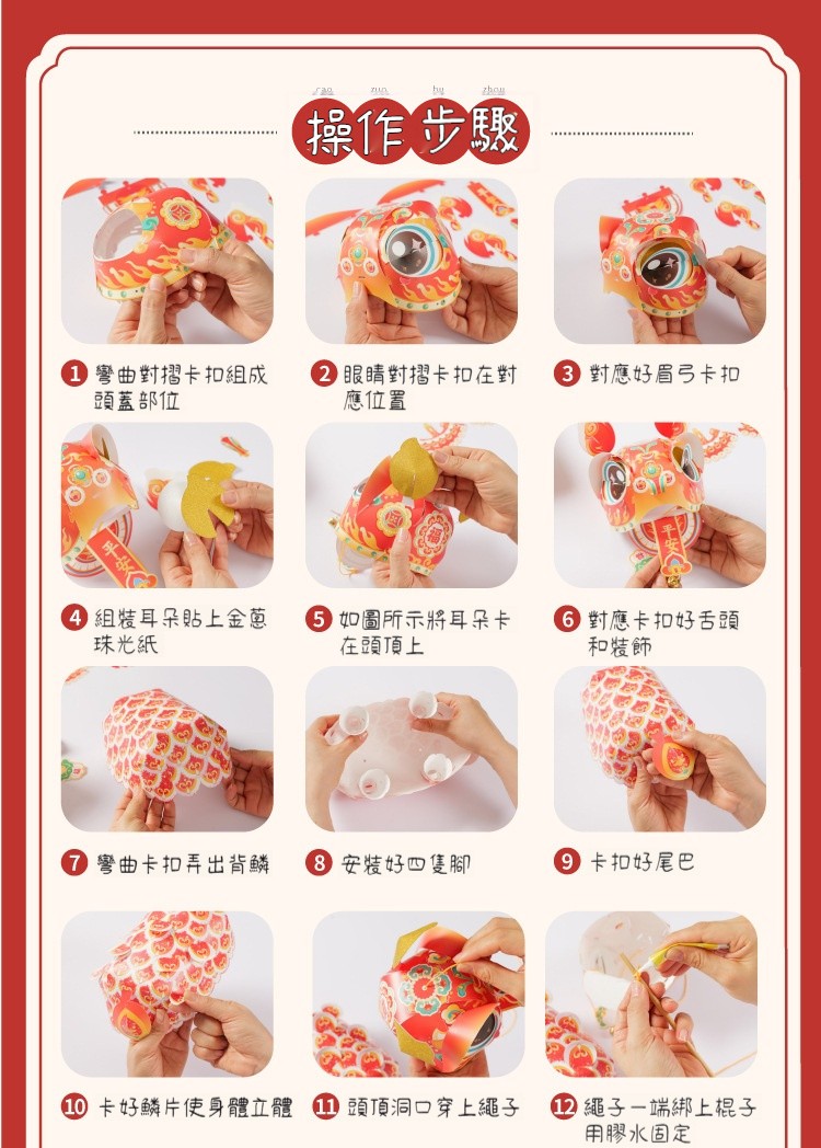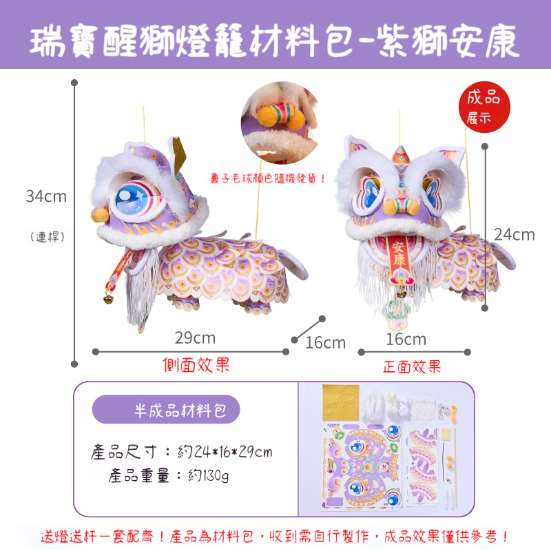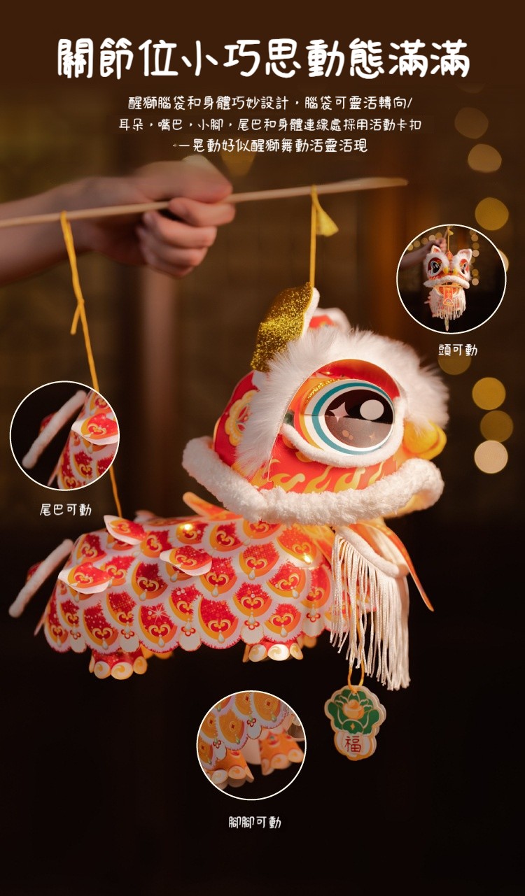 第 6 件 : 【手作迎新春】2026年新款醒獅手工燈籠diy材料包,新年兒童手提發光玩具pvc防水材質