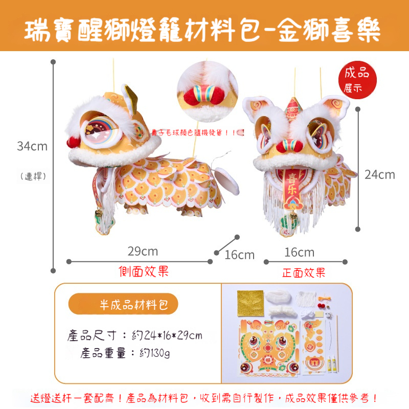 第 1 件 : 【手作迎新春】2026年新款醒獅手工燈籠diy材料包,新年兒童手提發光玩具pvc防水材質
