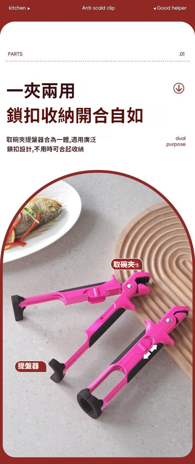 多巴胺二合一防燙夾,雙頭使用,穩夾碗碟,鎖扣收納,耐高溫不易變形