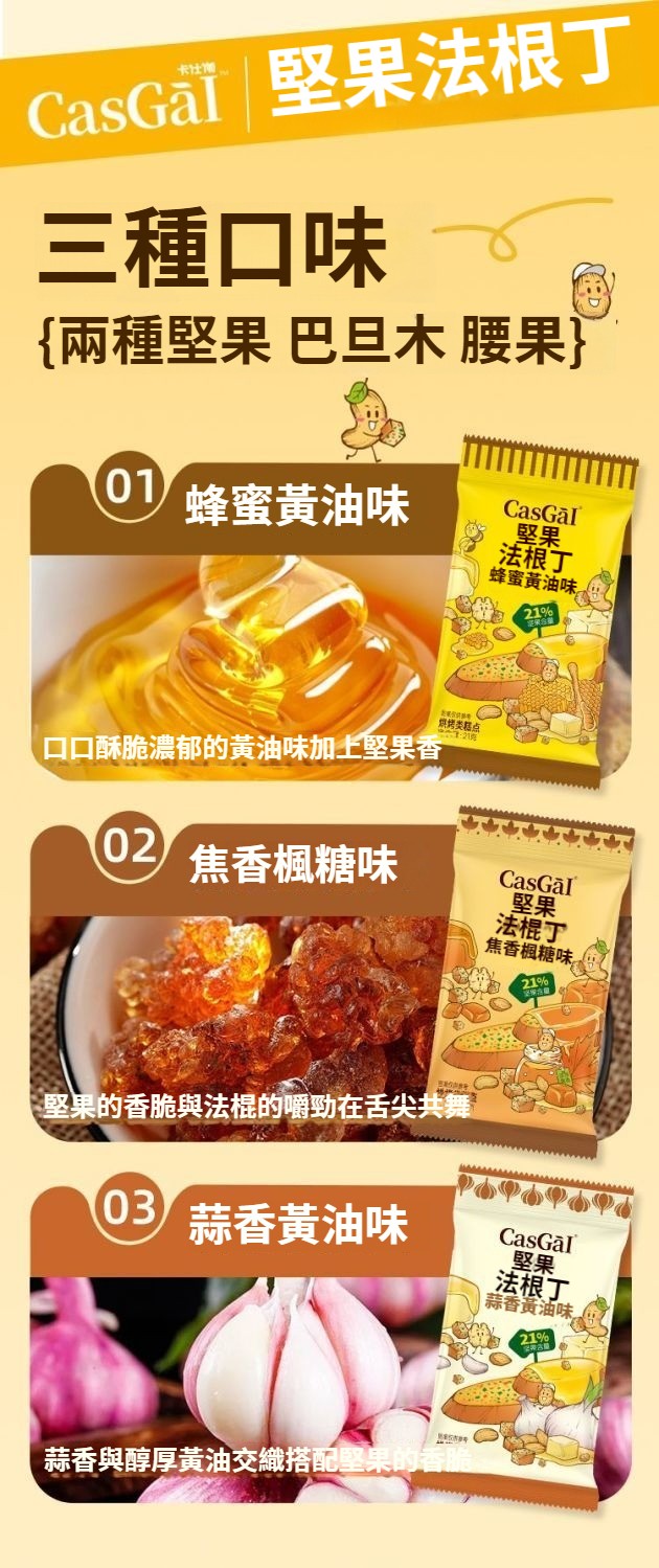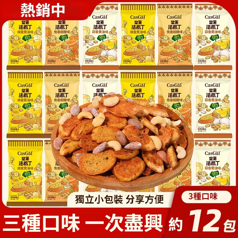 堅果搭配法棍,雙重美味,好酥脆!香味濃郁,酥脆可口,蜂蜜黃油、焦香楓糖、蒜香黃油