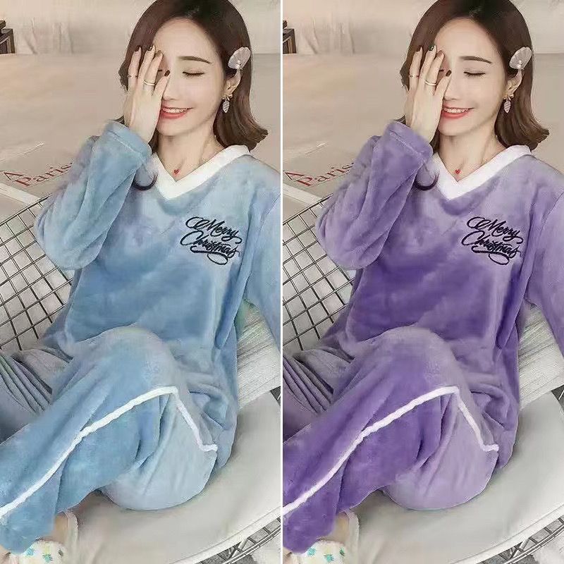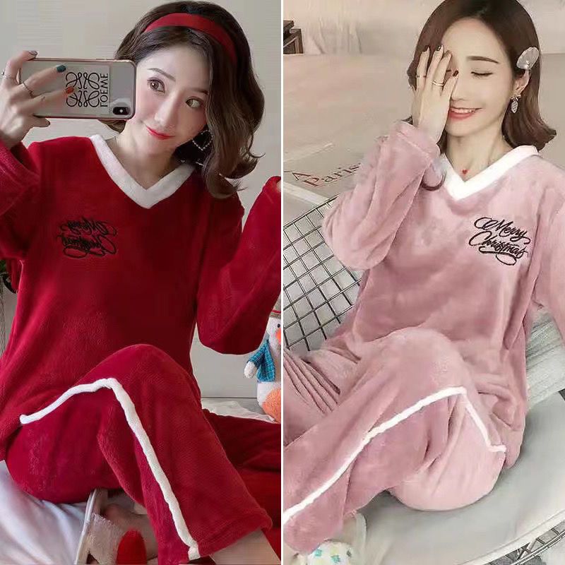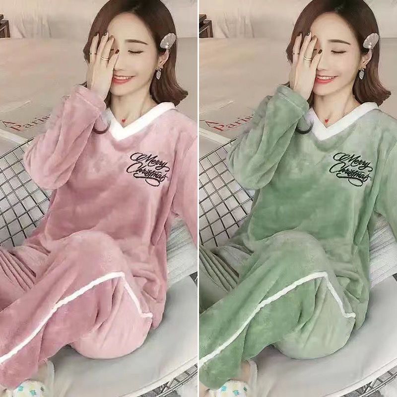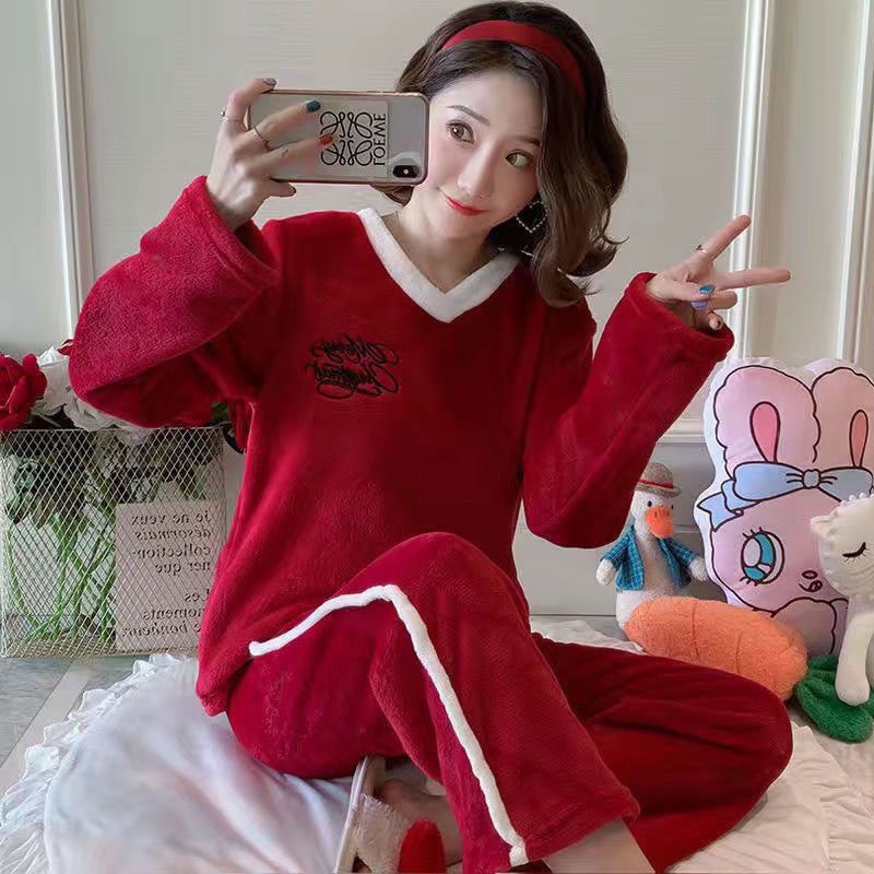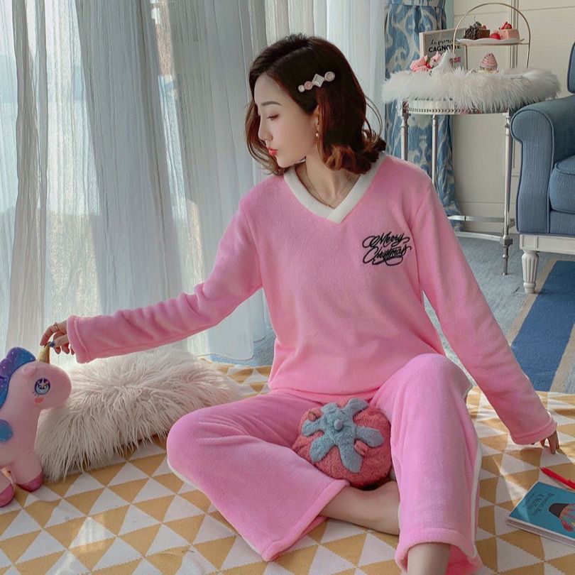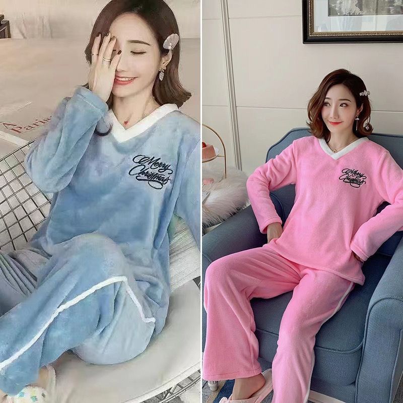 第 1 件 : 睡衣女法蘭絨冬季加厚韓版甜可愛套裝家居服