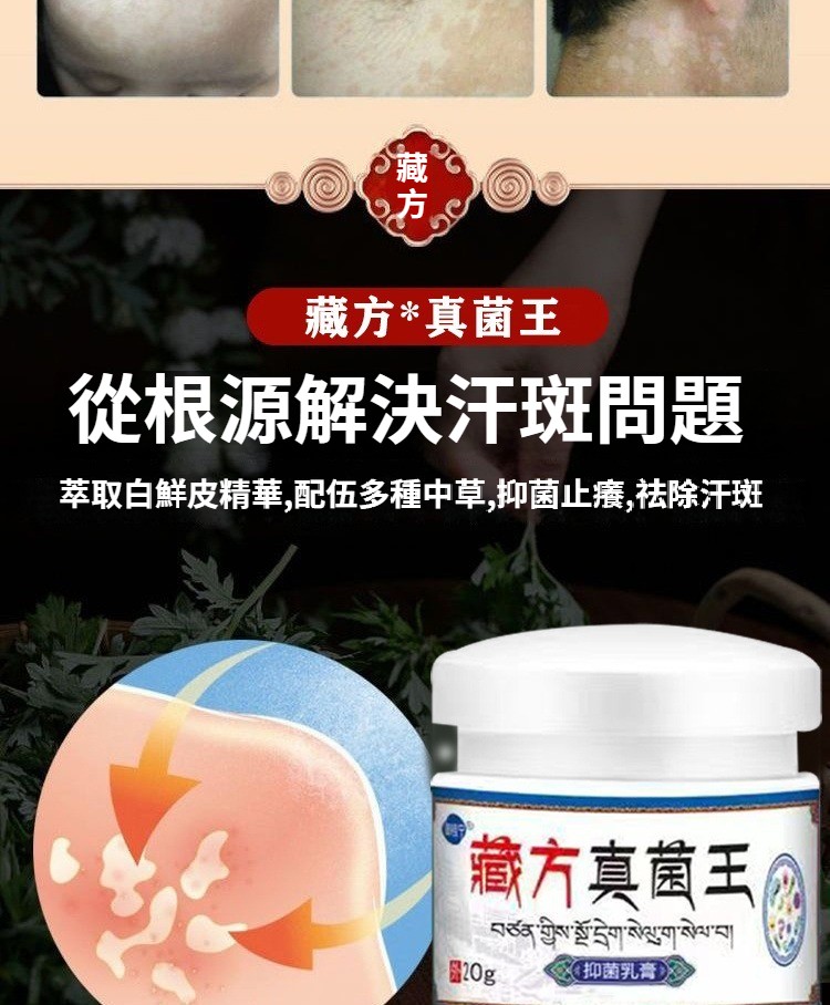 正品藏方真菌王汗斑白斑花斑褐色斑黑斑馬拉色白點汗斑專用