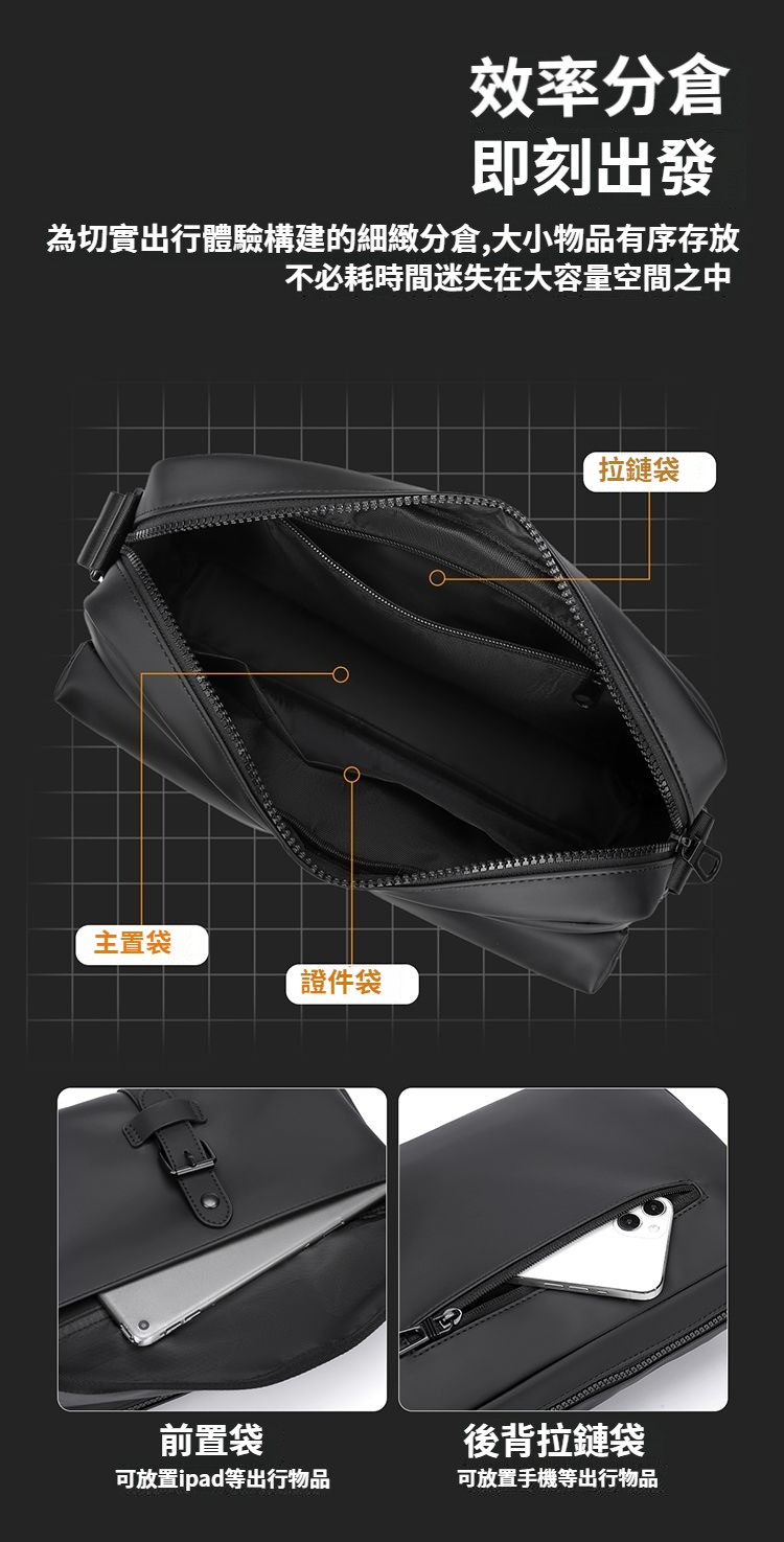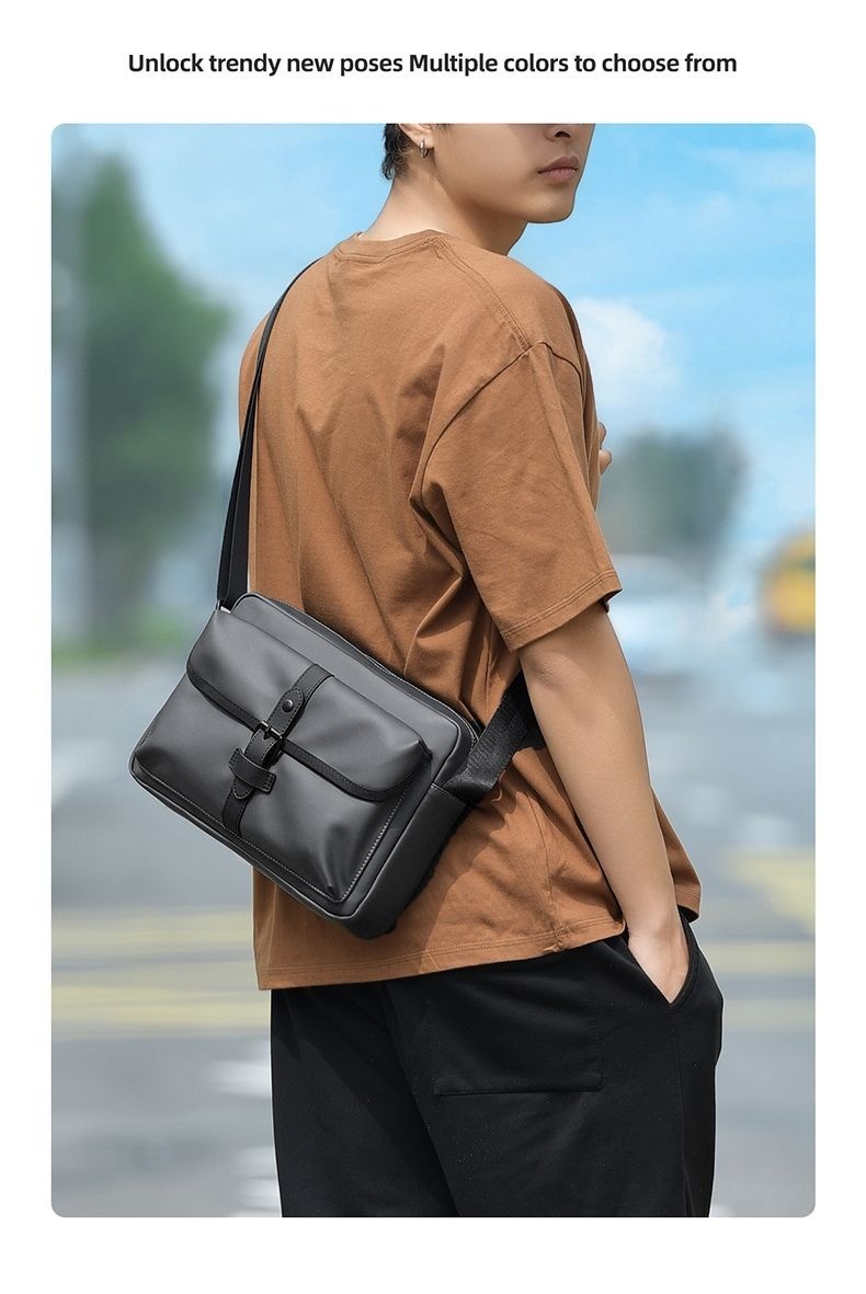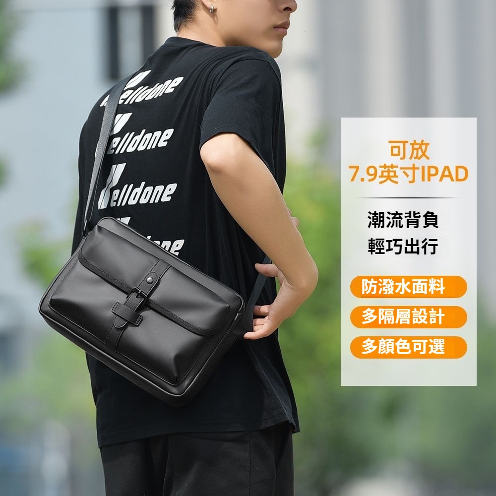 第 1 件 : 男士肩背包新款牛津紡休閒拉鍊郵差包斜背包大容量簡約商務男包
