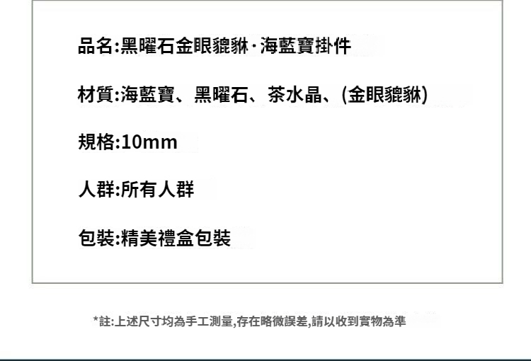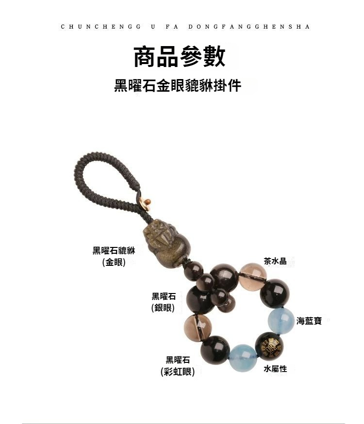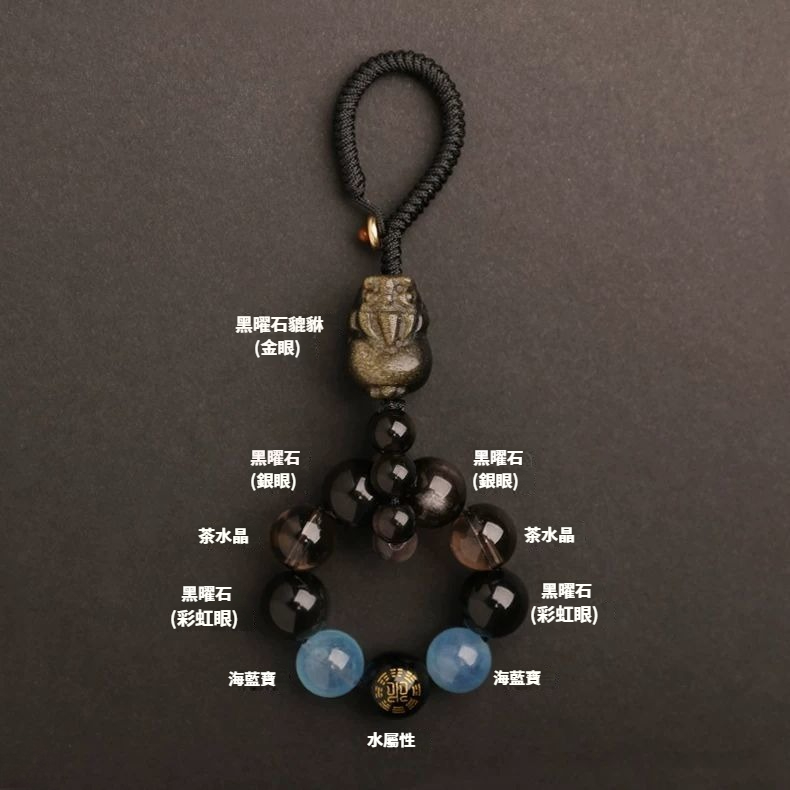 五行補喜水黑曜石海藍寶鑰匙圈掛件茶水晶金曜石貔貅手機掛飾吊墜 NT$ 799
