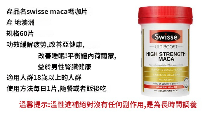 澳洲Swisse 斯維詩男性高濃度瑪咖片60片 提高精力釋放活性瑪卡片