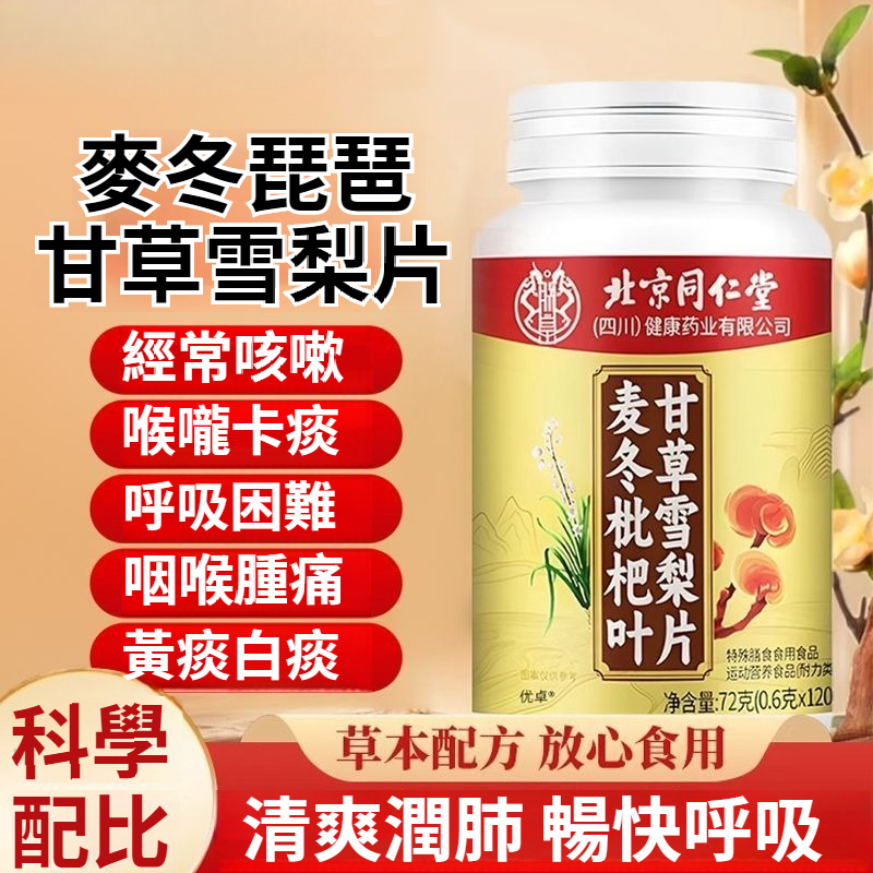 北京同仁堂 麥冬枇杷葉甘草雪梨片護嗓清肺草本滋補潤呼吸暢快