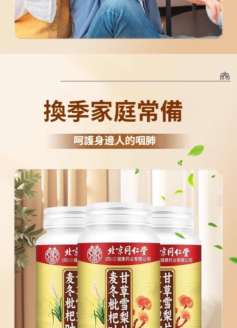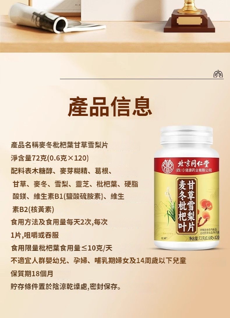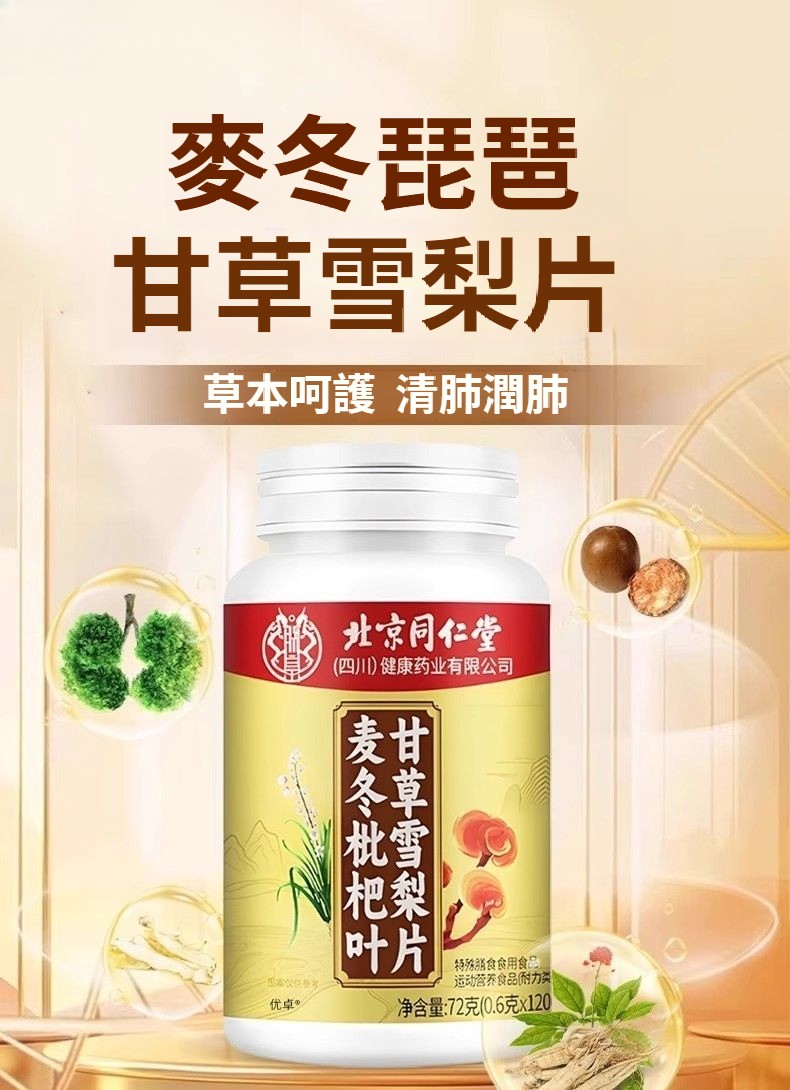 北京同仁堂 麥冬枇杷葉甘草雪梨片護嗓清肺草本滋補潤呼吸暢快 QAR 950