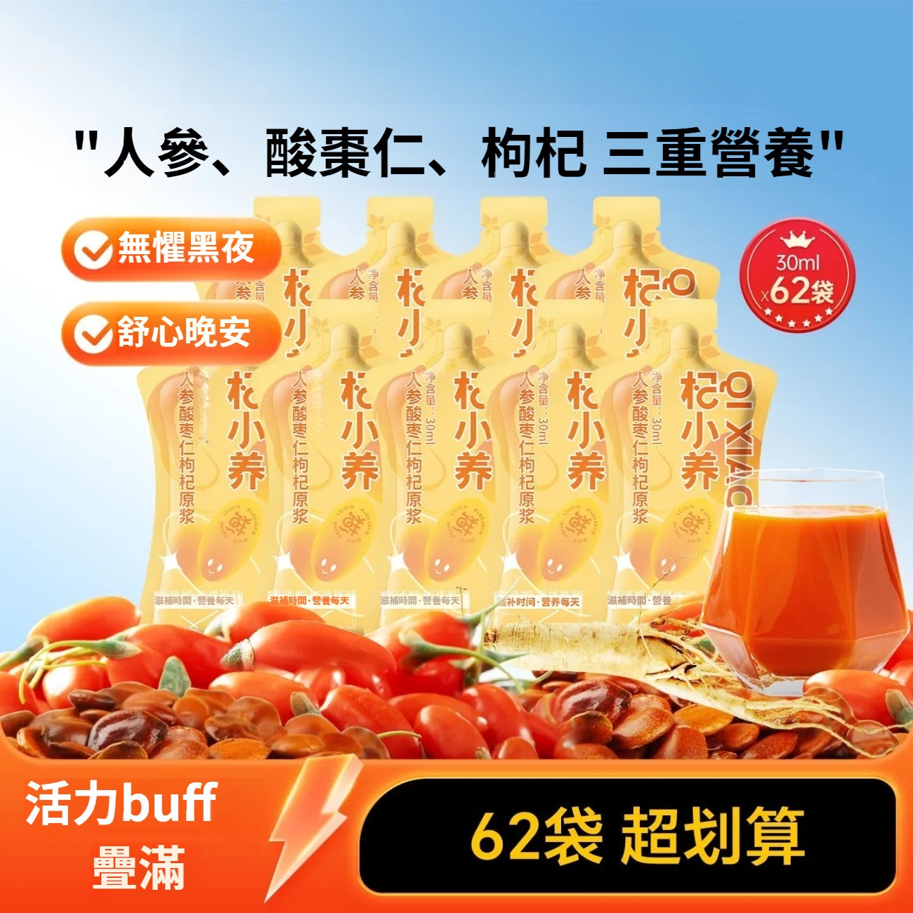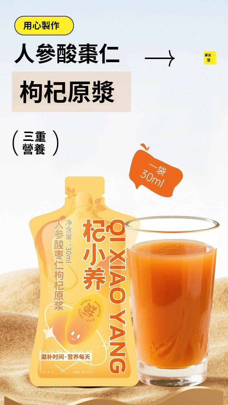 杞小養人參酸棗仁枸杞原漿30ml袋裝寧夏枸杞熬夜滋補恢復飲