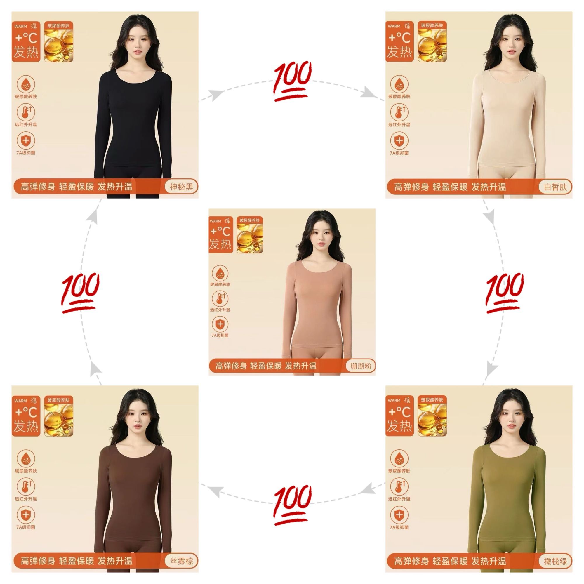 秋冬季恆溫發熱女內衣打底衫無痕長袖秋衣秋褲保暖套裝女