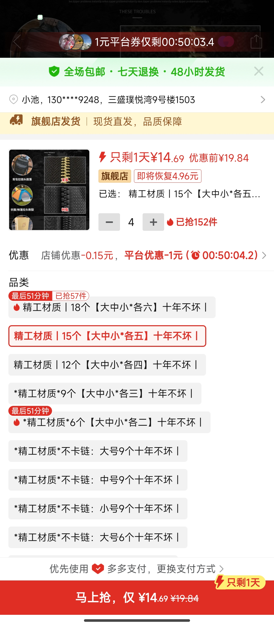 湯** 搶購成功 16分鐘前