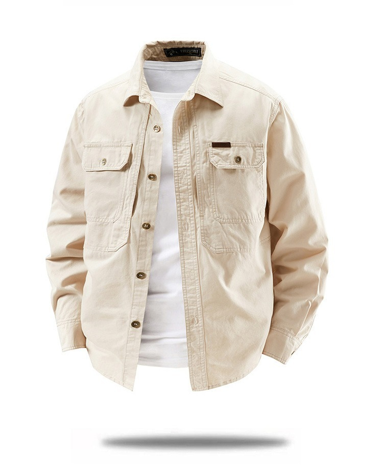 經典工裝長袖襯衫春秋季男士休閒百搭工裝水洗襯衣純棉