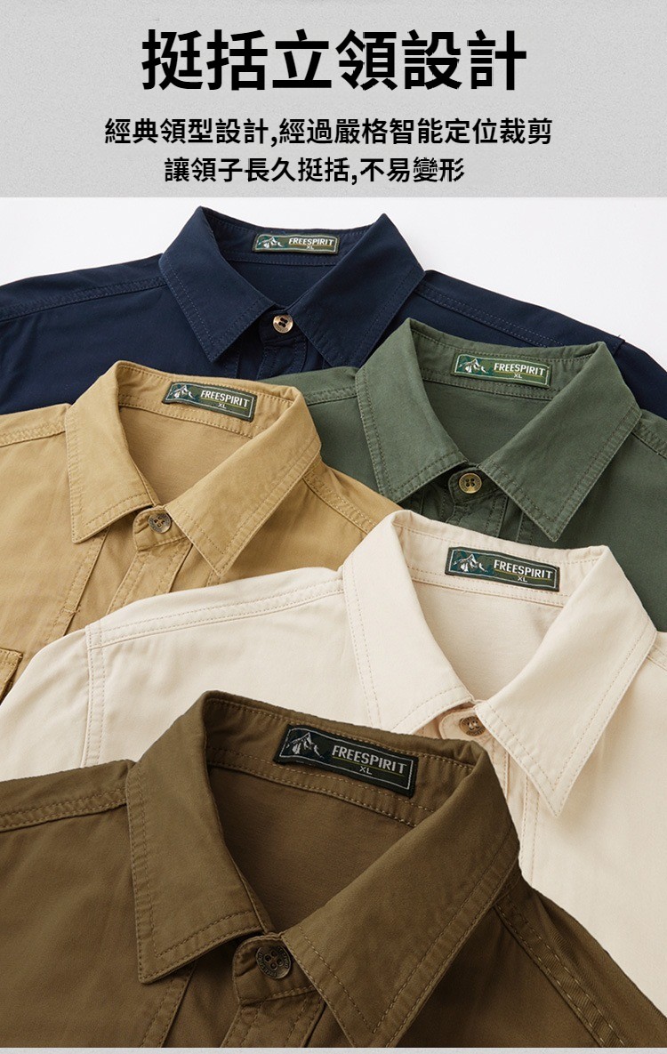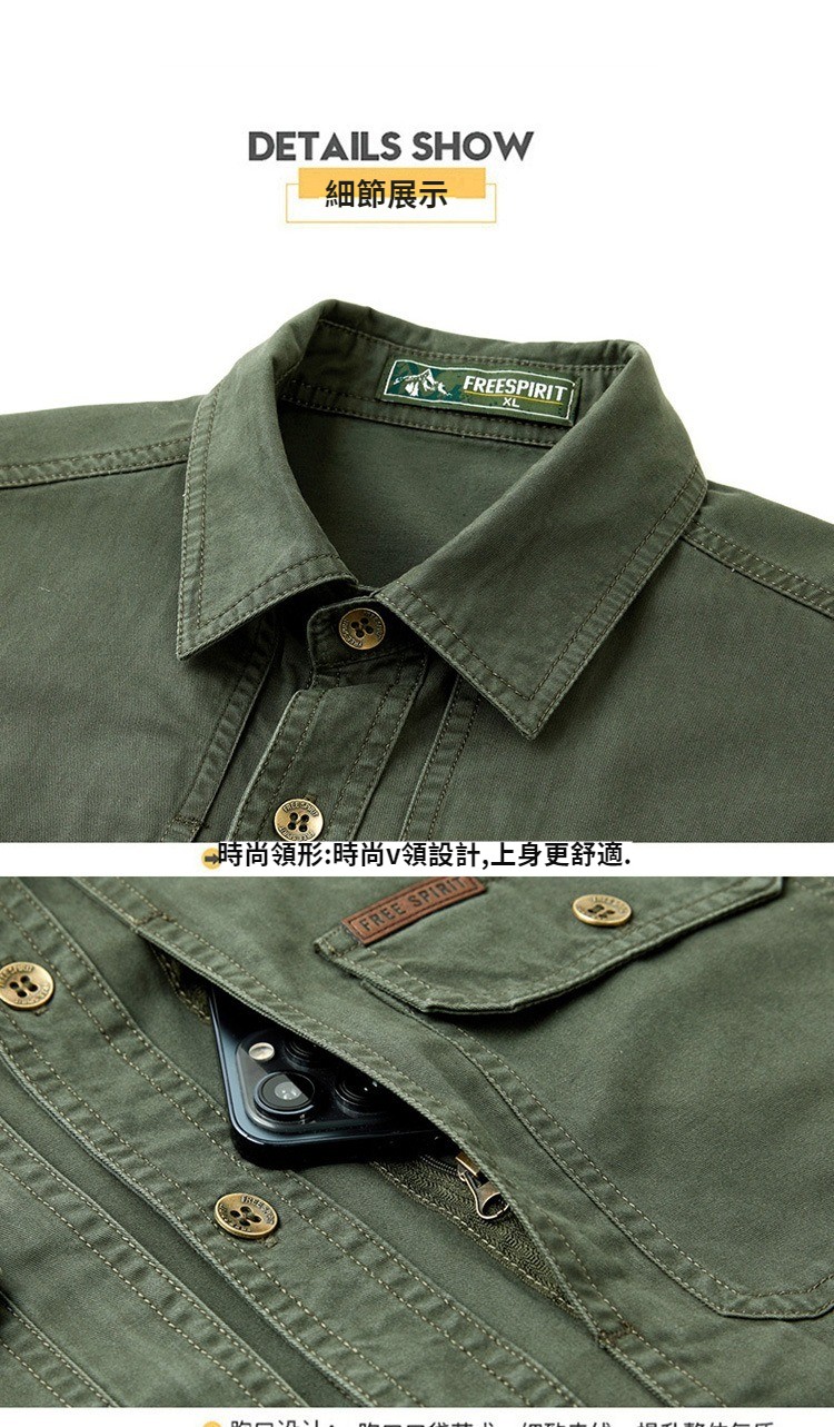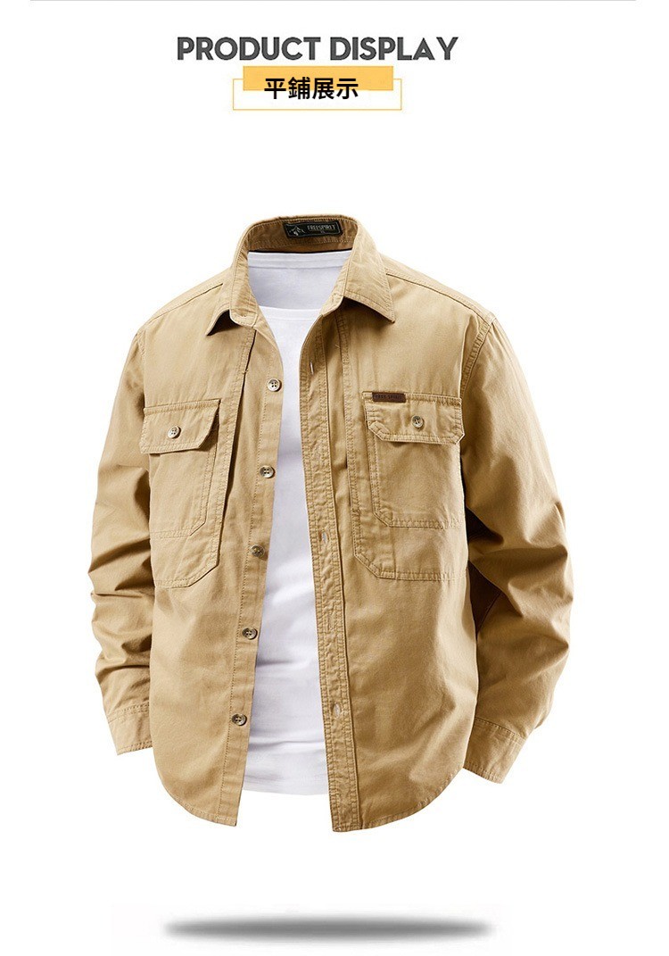 第 1 件 : 經典工裝長袖襯衫春秋季男士休閒百搭工裝水洗襯衣純棉